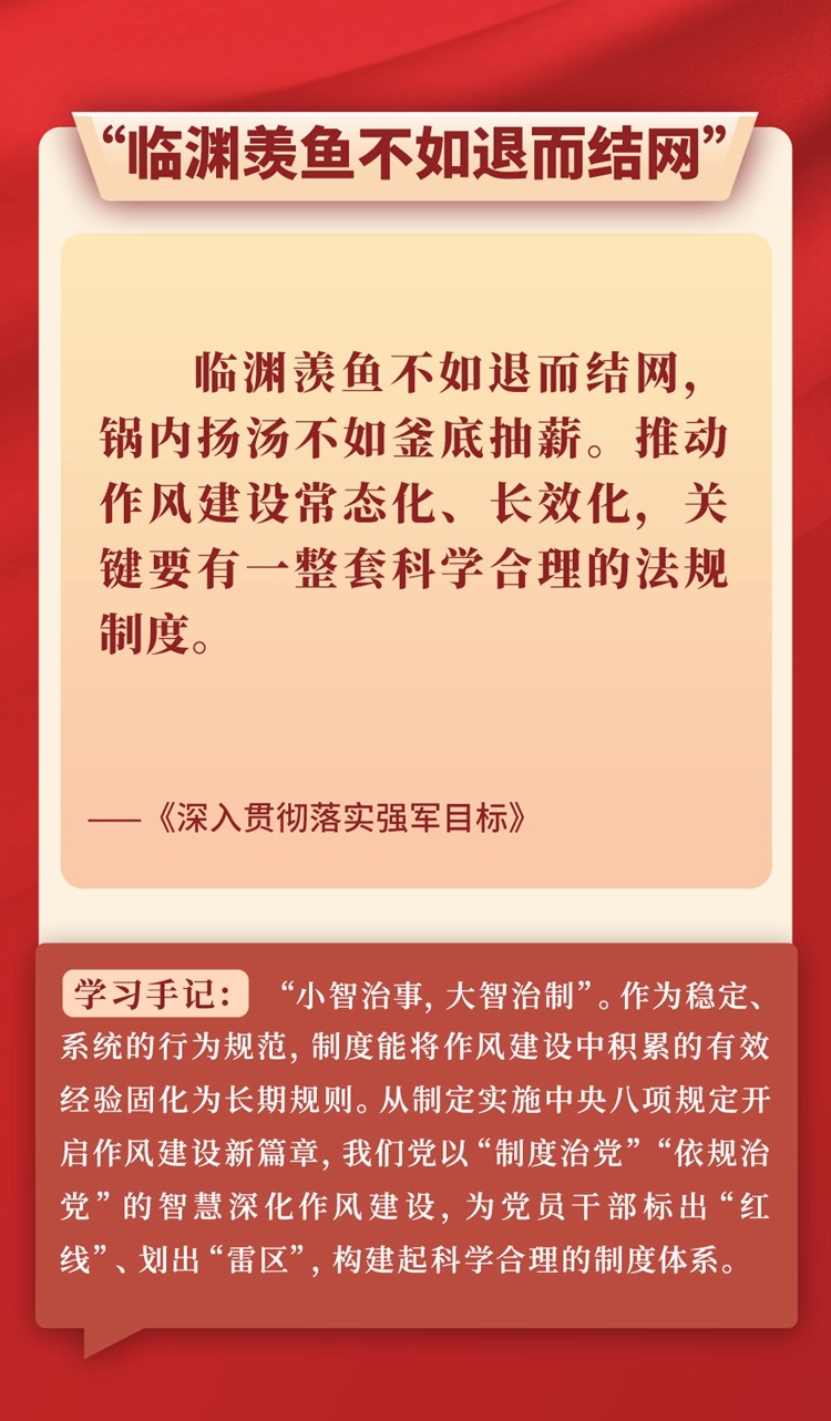 “问渠那得清如许?为有源头活水来。”关于作风建设,习近平总书记常引用各种古语典故,有的从警示层面讲危害,有的从倡导层面谈践行,旁征博引、画龙点睛,把古人智慧化用于作风建设的当代实践,给人以思想启迪、灵魂洗礼。