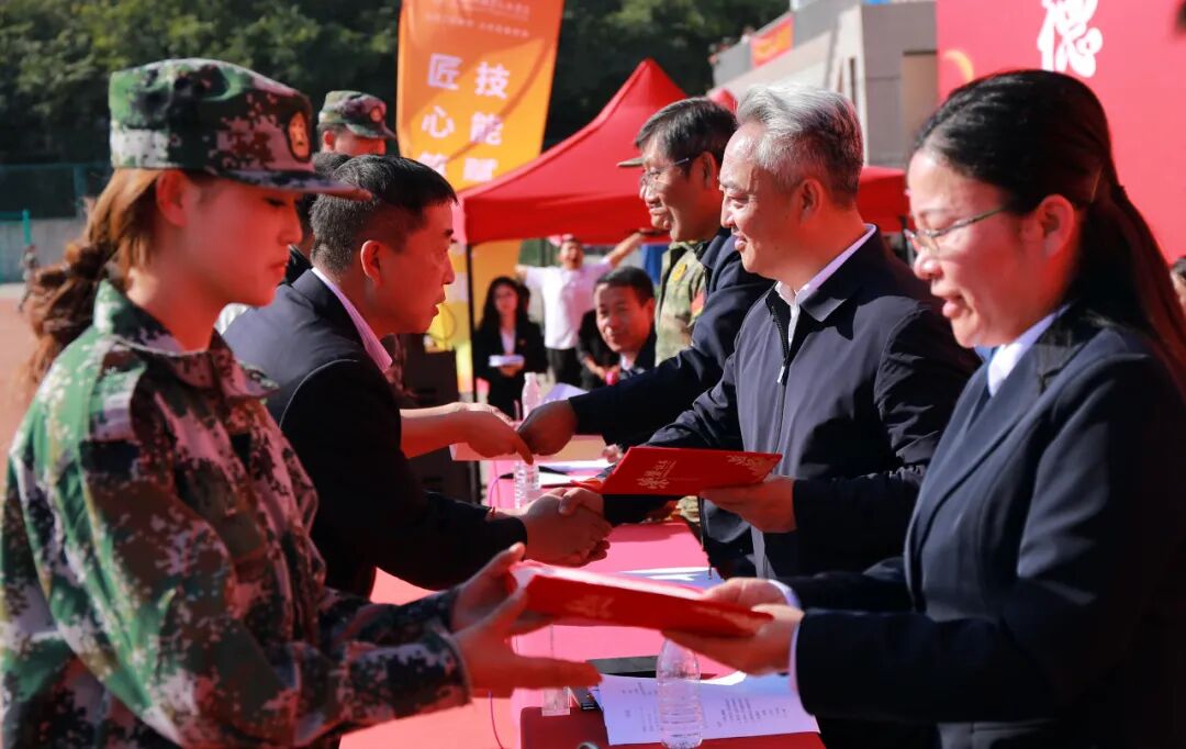 敬瑞霞宣读表彰决定,一批军训先进单位、先进集体、优秀教官、军训标兵登上领奖台。掌声如潮,荣誉属于每一位在烈日下坚持、在汗水中成长的轻工人。
