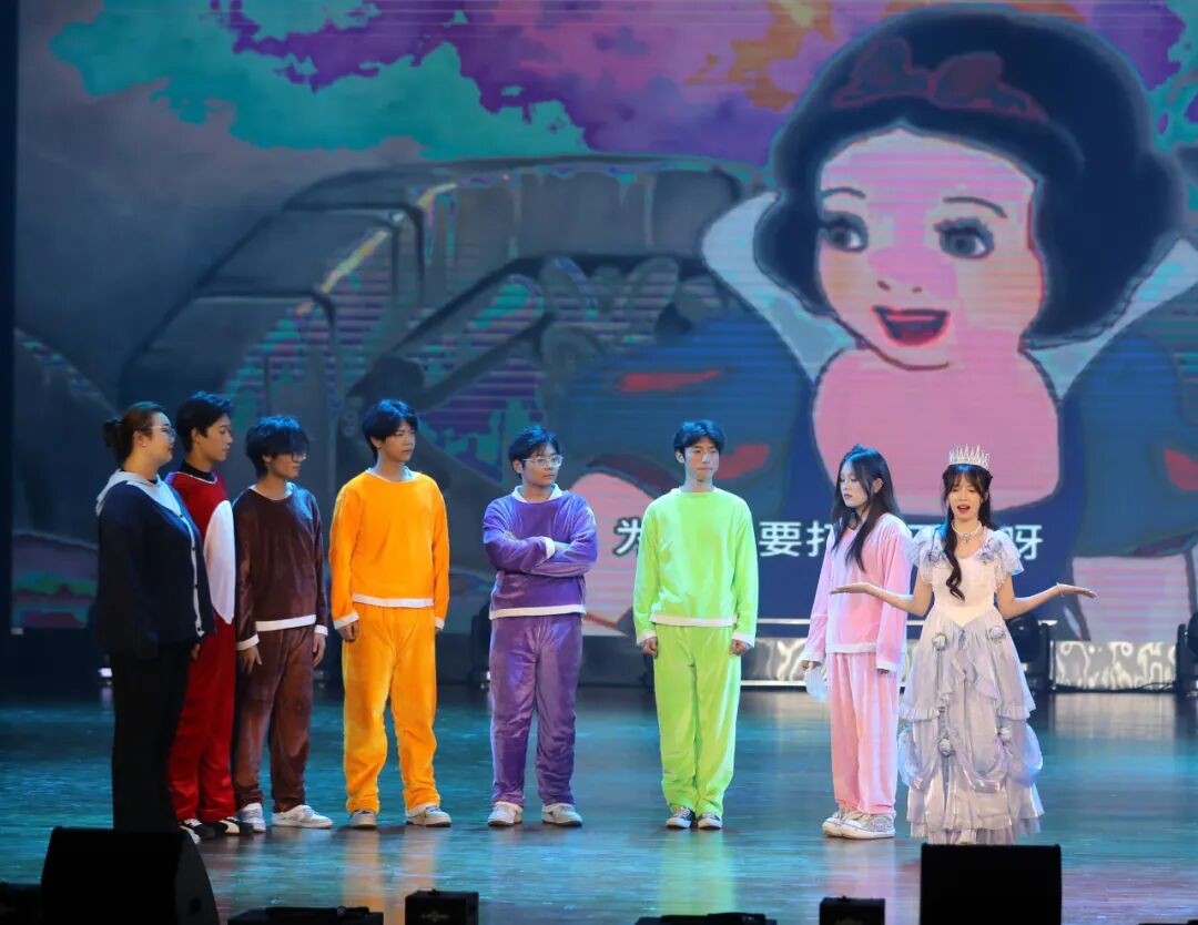 穆再排尔的《海阔天空》,是青年穿越山海的不羁与坦荡,用歌声劈开迷雾,让自由的翅膀掠过山海之巅;大学生艺术团语言分团演绎的创意话剧《白雪公主和七个大高个》以其天马行空的改编,幽默创意引爆笑声,在童话与现实之间炸开一片欢乐的涟漪。