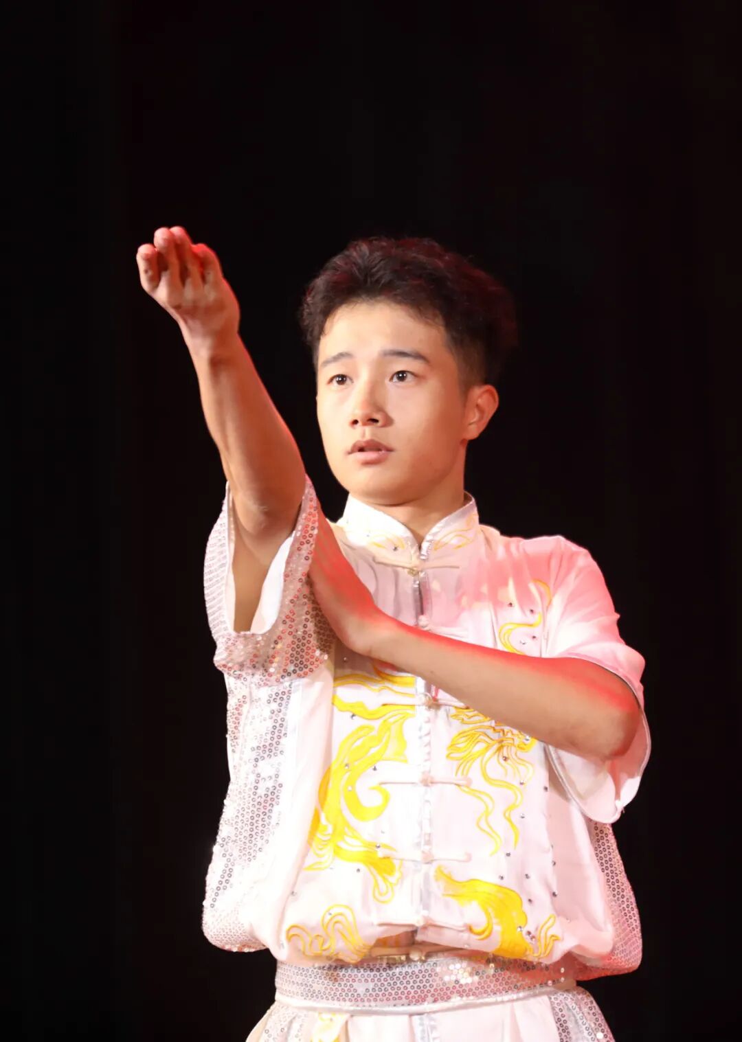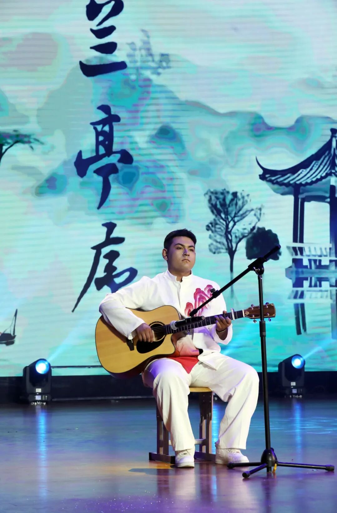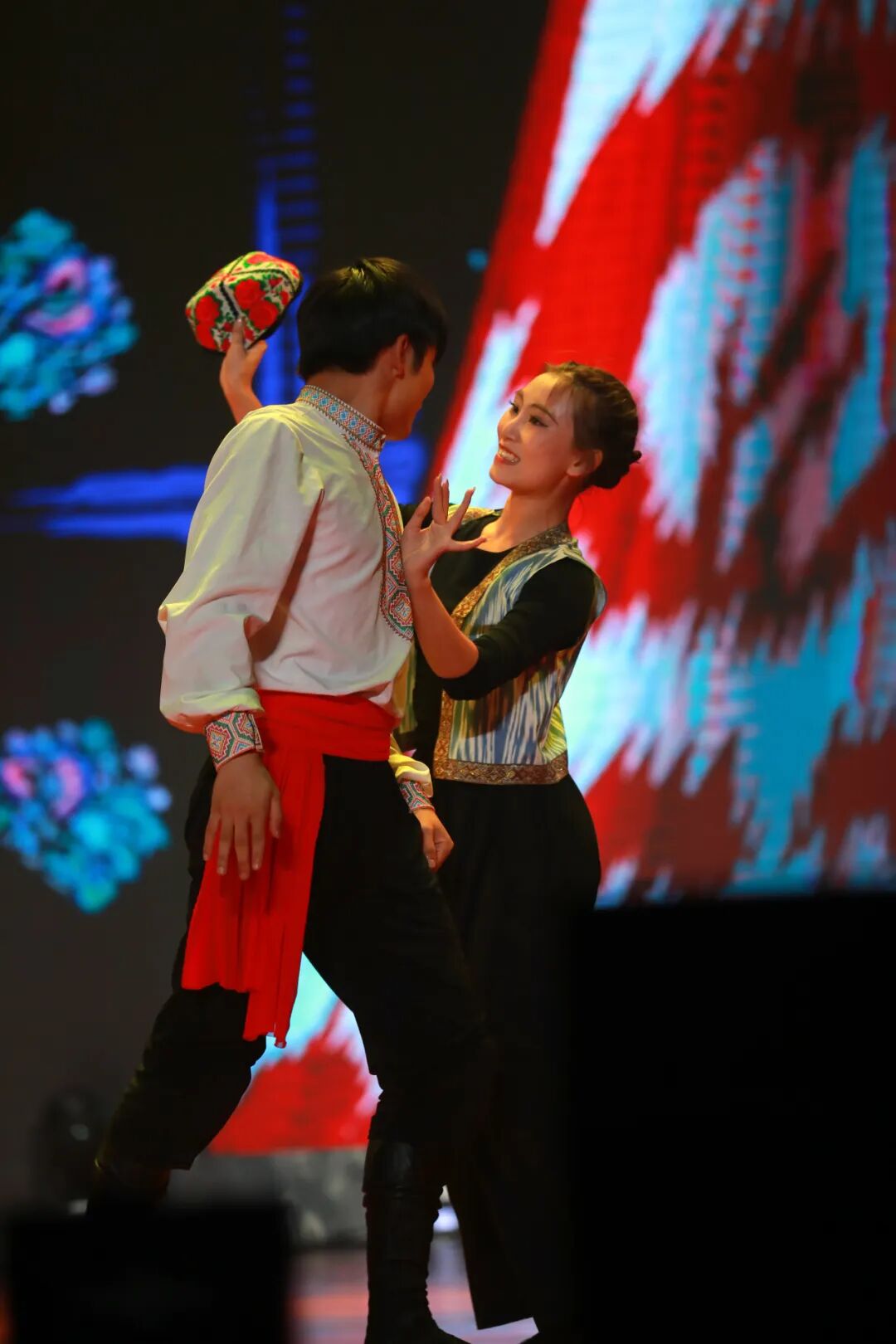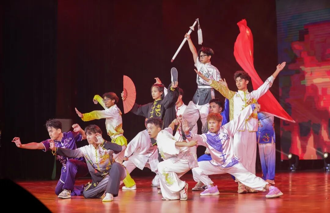 晚会在磅礴大气的开场舞《一条大河》中拉开帷幕,舞者们以舒展的身姿勾勒出奔流不息的壮美画卷,瞬间点燃全场热情。新疆艺术学院带来的民族民间舞《掀起你的盖头来》,热情灵动的舞步中尽展丝路风情与民族韵味;学校社团部选送的武术表演《热血武术魂》则刚劲有力,那是筋骨的力量,是青春的锋芒,彰显着中华武魂的豪情壮志。