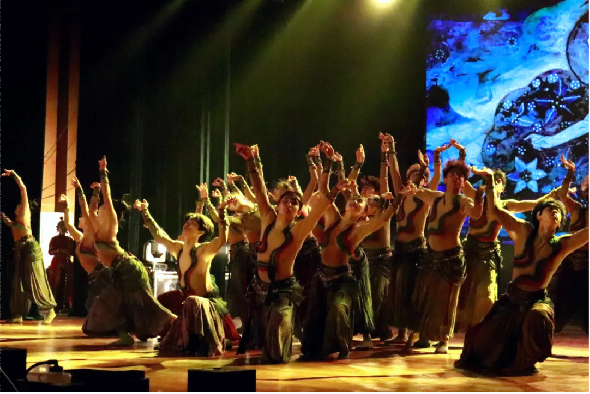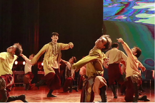 作为压轴,男子群舞《阳光下的麦盖提》将活动推向艺术与情感的巅峰。这部斩获中国舞蹈“荷花奖”民族民间舞金奖的作品,巧妙融合刀郎舞与山东秧歌元素,舞者们刚劲的踏步、豪迈的扬臂,将国家级非物质文化遗产 “刀郎麦西热甫”的激情展现得淋漓尽致,绘就出新疆各族人民在党的领导下,汗水与欢笑交织的幸福图画,台下掌声与欢呼声久久不息。