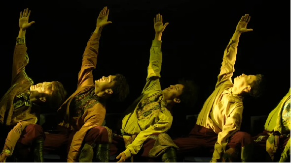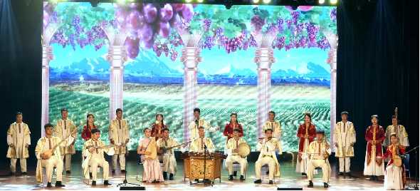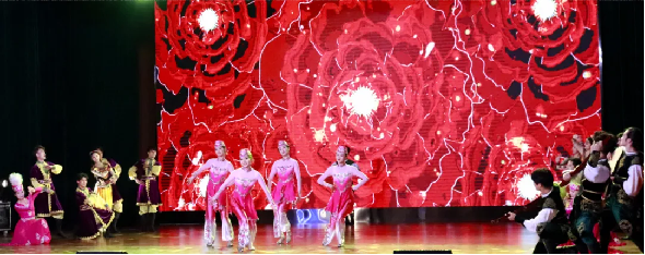 《舞乐新疆》率先登场,裙摆随着鼓点轻旋曼舞,每个动作都盛满了灵动与热情;《铅华・满壁》则用细腻的肢体模拟古壁画姿态,古雅与现代舞美交融,仿佛能听到画中人物的低语;《阳光照耀着塔什库尔干》勾勒出帕米尔高原风光,琵琶声如急雨般迸发,现场响起雷鸣般掌声。