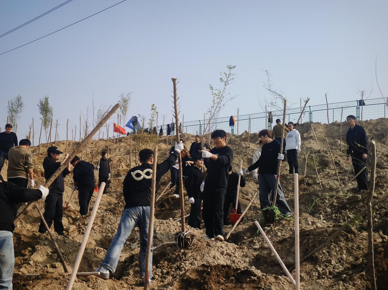 秋高气爽,植绿正当时。10月24日,学校组织200名青年学子前往米东区义务植树点,积极参与秋季植树活动。同学们以劳动为笔,为城市描绘新绿,在实践课堂中锤炼品格、凝聚合力,展现出新时代青年积极参与生态建设、乐于奉献的青春风采。