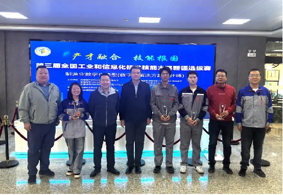 在第三届全国工业和信息化技术技能大赛新疆选拔赛制造业数字化转型(数字化解决方案设计师)赛项中,我校师生表现卓越,职工组(含教师)蔡生宏、李喜鸽获一等奖,何强龙、施富贵获二等奖;学生组程丁宇、张文博获一等奖,王鹤霖、张栩珲获二等奖,彰显了学校在推进产教融合、培养数字化高端技能人才方面的显著优势。