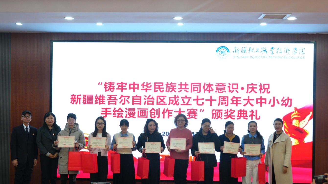 近日,我校马克思主义学院举办大中小幼手绘漫画创作大赛颁奖活动。乌鲁木齐经济技术开发区(头屯河区)大中小幼思想政治教育一体化建设第四协作组各成员单位领导及获奖学生、优秀指导教师代表齐聚一堂,共同见证思政与艺术交融的育人成果。