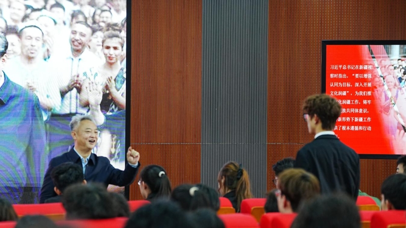 12月3日,一场别开生面的思政课在我校开讲。学校党委书记王玉刚教授以“有形有感有效推进文化润疆”为题,为青年学子们开启了一扇认知家国使命、锚定青春坐标的“思想之门”。