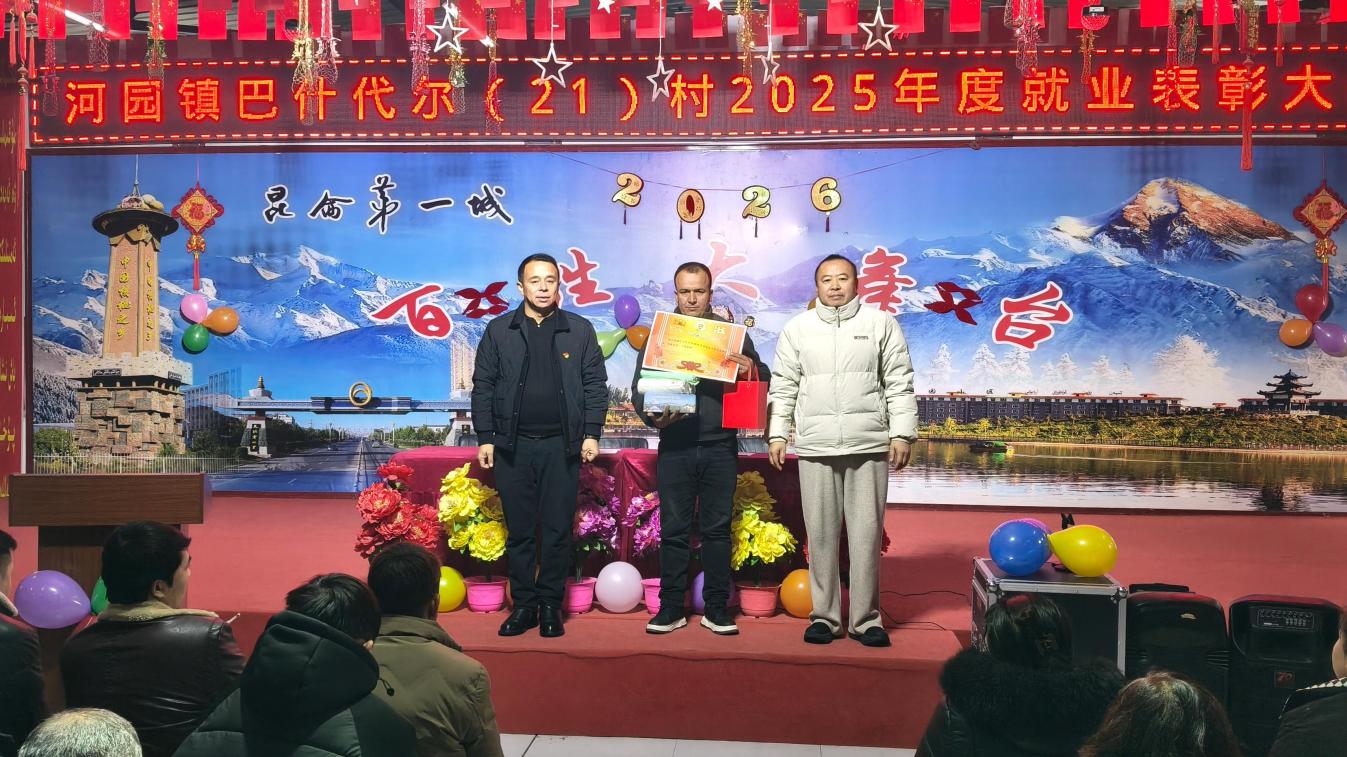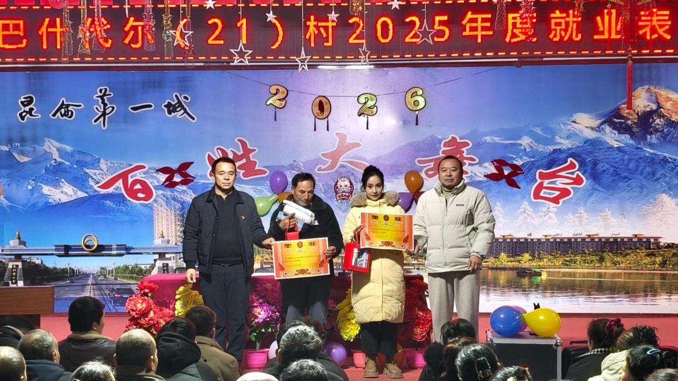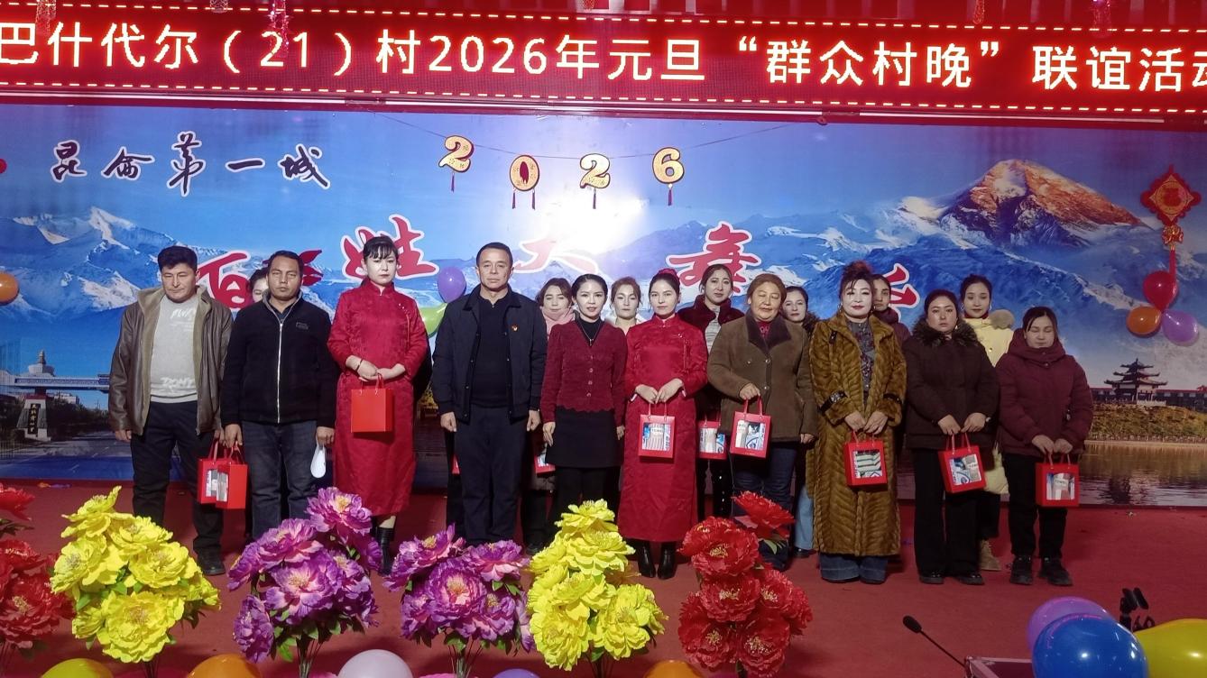 新年将至,万象更新。为表彰先进、凝聚民心,激发群众就业增收内生动力,营造喜庆祥和的节日氛围,12月29日,学校驻叶城县河园镇巴什代尔村(21)村工作队联合村“两委”,共同举办2025年度就业表彰大会暨2026年元旦“群众村晚”联谊活动。全村群众欢聚一堂,共迎佳节、共谋发展。