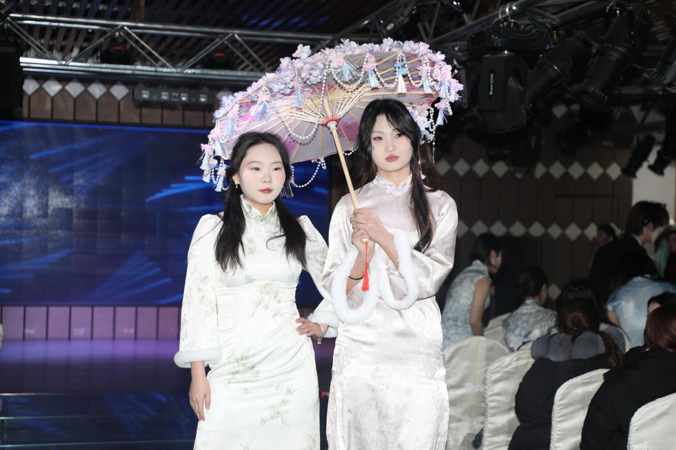 1月13日,我校纺织服装公共实训基地二楼展厅内灯光柔和、衣影静陈。2024级服装设计与工艺专业《服装成衣工艺》课程结课作品展演在此正式举行。本次展演以“旗袍匠心”为主题,集中呈现学生本学期专业学习的扎实成果,亦折射出年轻一代对中华传统服饰文化的理解、传承与创新。