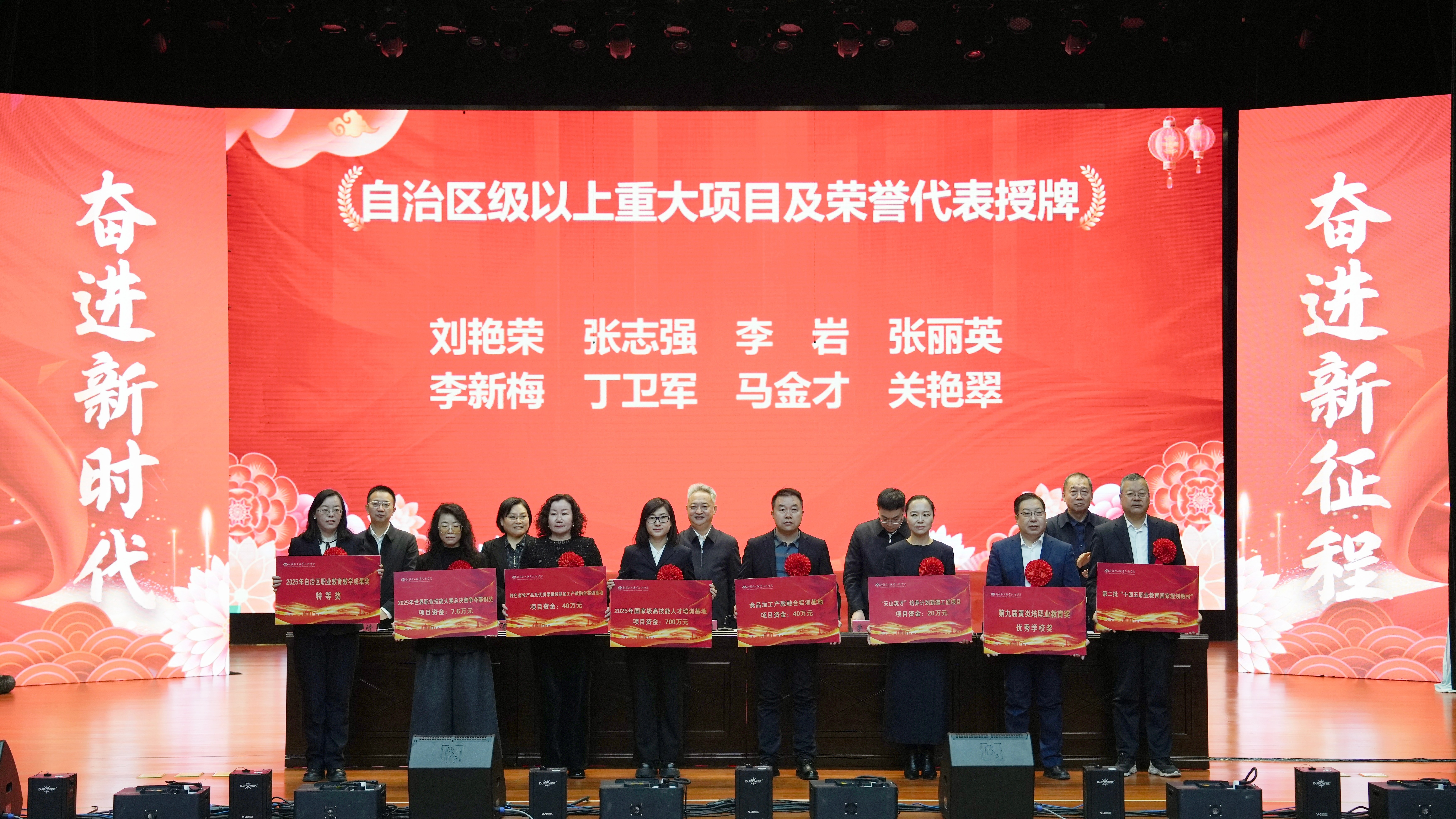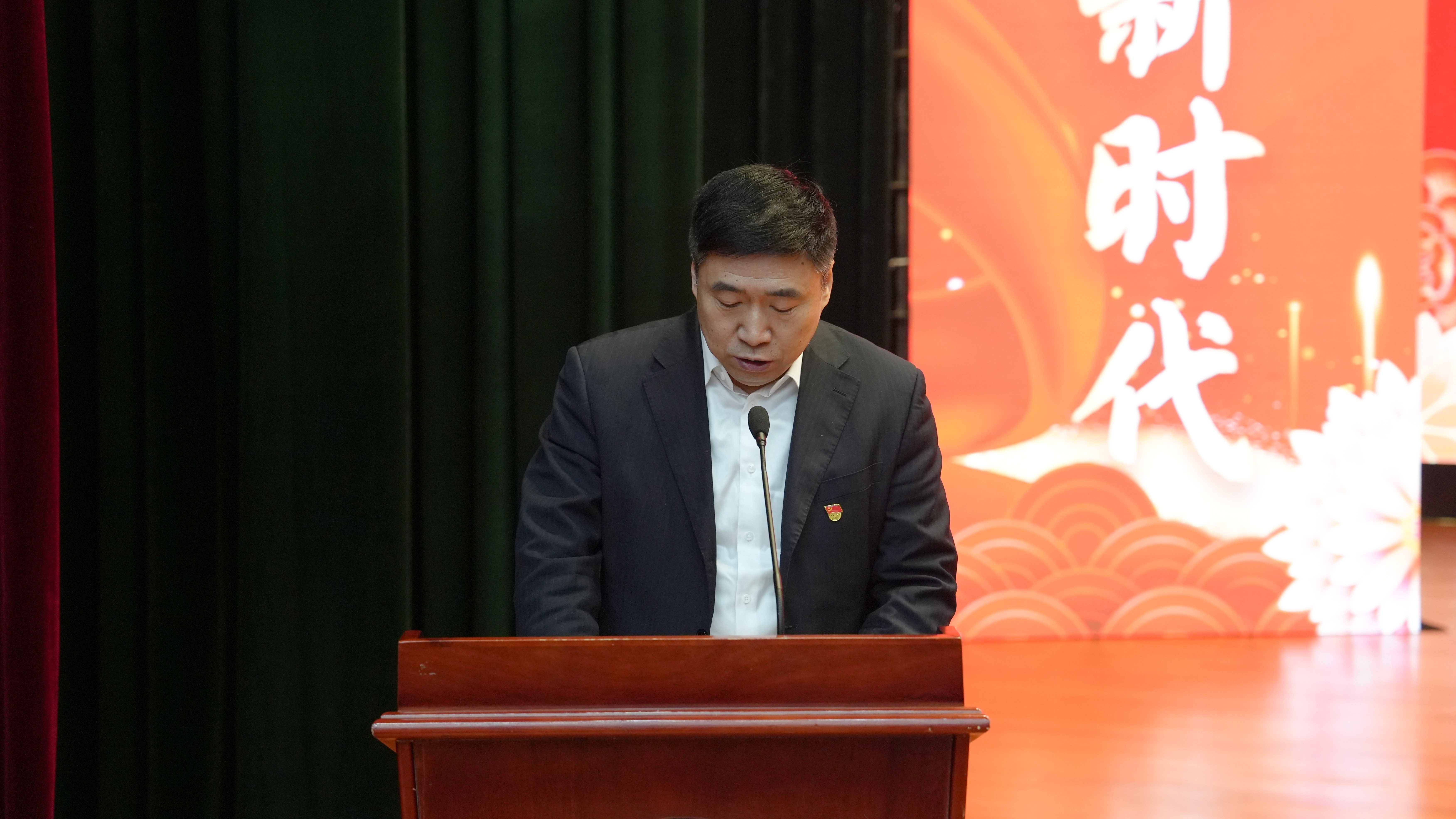 鼓角催征,见证奋斗征程;掌声雷动,致敬榜样力量。1月21日,学校处处洋溢着昂扬奋进的热烈氛围,一场属于全体“新轻工”奋斗者的年度盛典——2025年度总结暨表彰大会隆重举行。大会以“擎党旗铸魂聚力 树榜样破茧新生”为主题,既是对过去一年学校各项事业突破性发展的全面检阅,更是凝聚全校共识、吹响2026年高质量发展攻坚号角的动员令。
