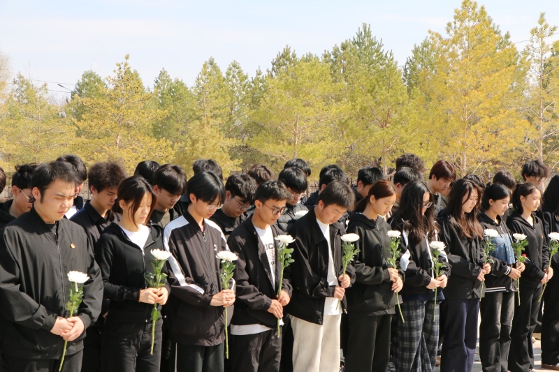 祭扫现场庄严肃穆,全体师生整齐列队、垂手肃立,在革命烈士纪念碑前驻足默哀、深深鞠躬,以最庄重的仪式,深情追思先烈们的崇高精神与不朽功勋。