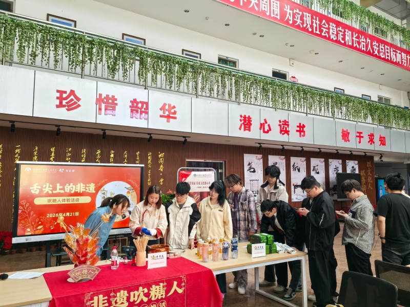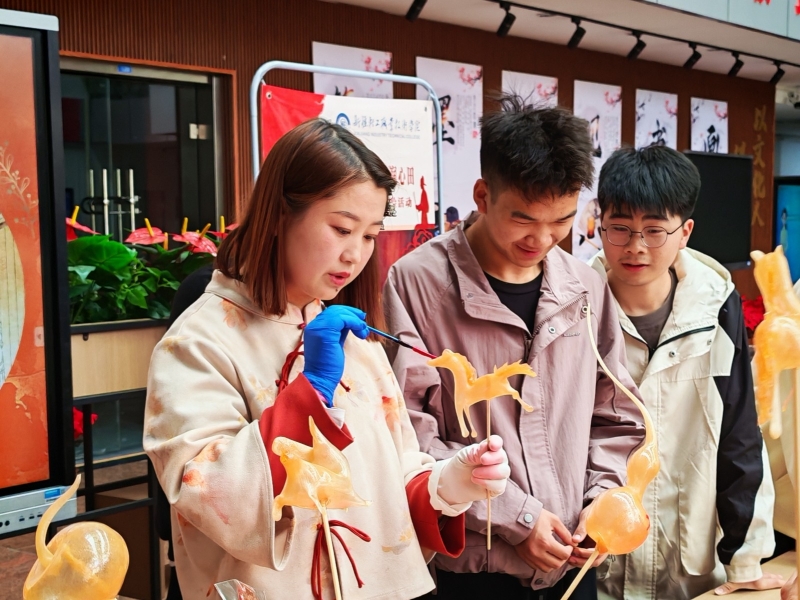 吹糖人体验活动特邀吹糖人老师现场演示,其精湛技艺将糖稀吹塑成十二生肖、花鸟鱼虫等栩栩如生的造型,引得师生连连赞叹。现场设置知识问答环节,师生在互动中近距离感受传统民间艺术的魅力。