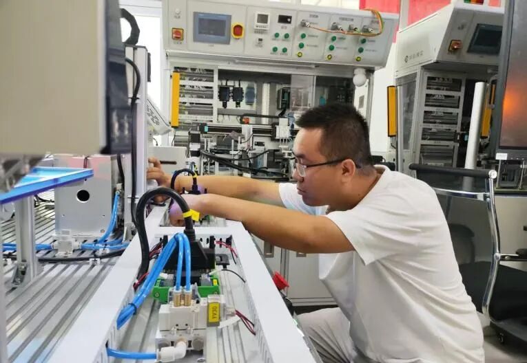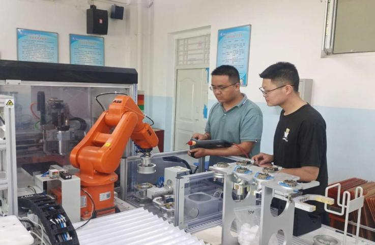 “那天从早上10点到第二天凌晨2点,我们没合过眼。”蔡生宏回忆,他和学生围着设备一点点排查,十几遍的尝试后,终于在凌晨理通逻辑,让流程顺畅运行。三个月后,这支队伍在全国大赛高职组机器人系统集成赛项中摘得三等奖。