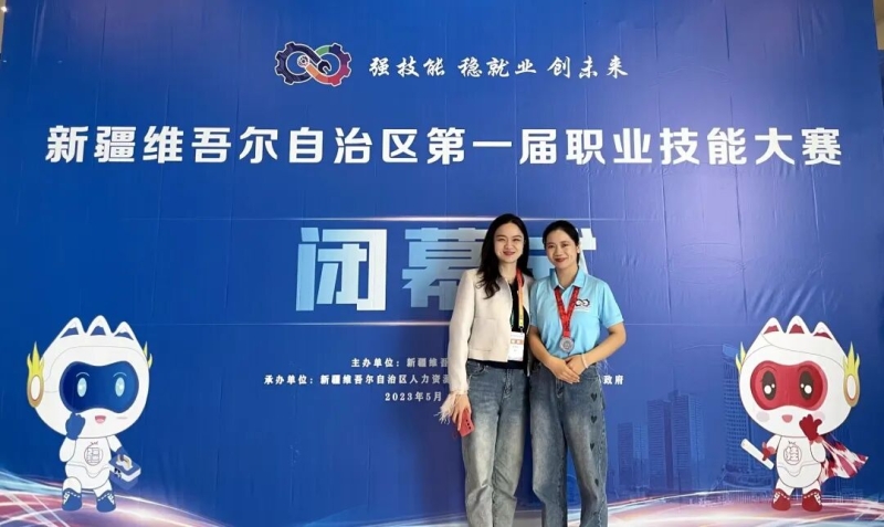 2021年,自治区级职业技能竞赛导游赛项、茶艺赛项集训的重担落在舒毅肩上。为了让师生快速适应赛事节奏,她把办公室搬到了集训场地,白天盯着实训流程,从导游的手势站位到茶艺的注水角度,都亲自示范;晚上则熬夜整理赛事资料,这份“连轴转”的付出,很快结出了硕果:2021年,她带领团队教师宋江、张晶晶在全国职业院校教师能力大赛中一路过关斩将,最终捧回二等奖,让自治区在该赛事的成绩单上写下了新的高度;2022年,她凭借扎实的教学功底、别具一格的教学风格,获评全国通用素质课程、优秀教师;2023年,她入选首批“天山英才”培养计划新疆工匠项目,彼时的她只是笑着说:“这不仅是一份荣誉,更是一份沉甸甸的责任”;2025年,以她命名的自治区级技能大师工作室正式获批,又为技能人才培育搭建起新的平台。