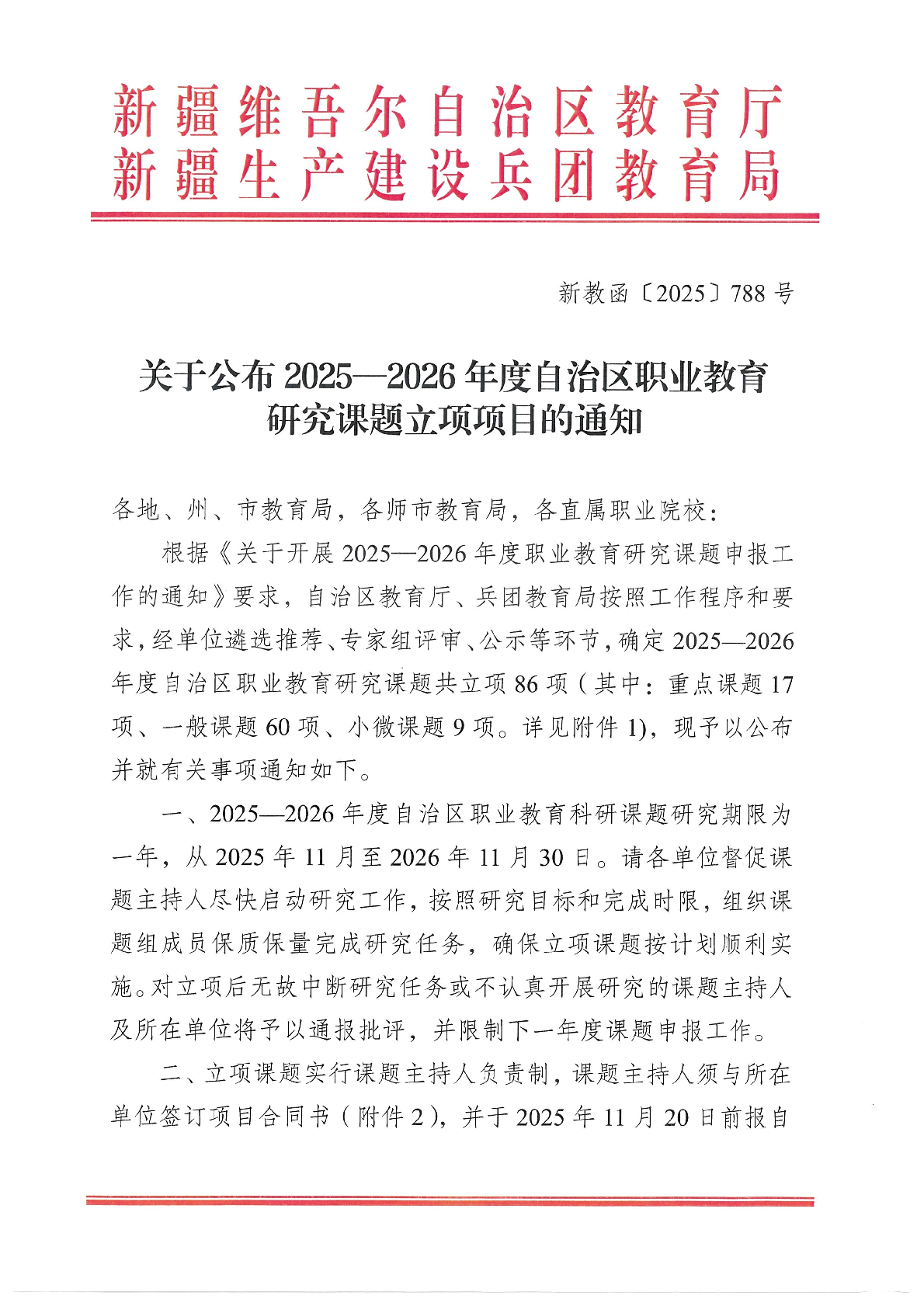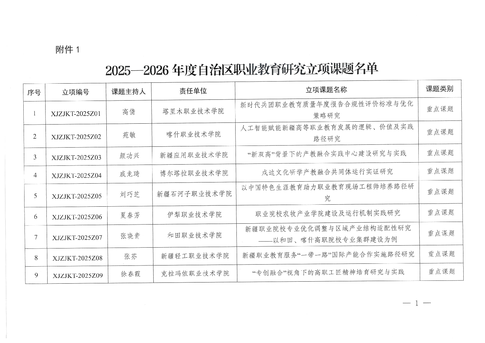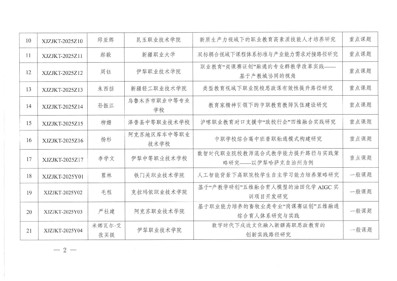 关于公布2025—2026年度自治区职业教育研究课题立项项目的通知