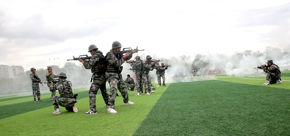 分列式、擒敌拳、匕首操……军训成果展示精彩纷呈,同学们一招一式,动作敏捷,气势磅礴,让现场观众大饱眼福。“请党放心”“强国有我”的口号响彻云霄,现场犹如一幅军绿色的迷彩画卷,每一个瞬间都诠释着努力与拼搏,焕发出青春最绚丽的底色。
