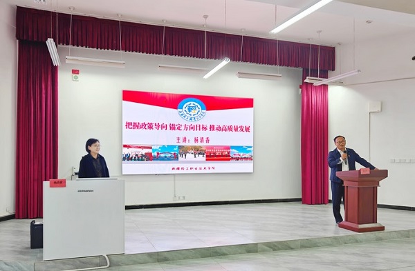 会后,杨清香一行实地走访了喀什理工职业技术学院机电专业、信息专业实训室、教学实验室,与该校专业负责人深入交流,详细了解各专业建设情况,并为喀什理工职业技术学院全体教师作了主题为“把握政策导向、锚定方向目标、推动高质量发展”的专题报告。