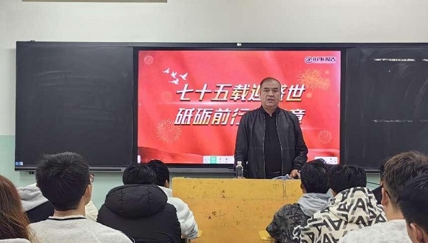 为深入学习贯彻习近平总书记对学校思政课建设作出的重要指示,夯实学校党委直接领导思政课、亲手抓思政课的主体责任,充分发挥思政课立德树人的主渠道作用,近日,学院党委委员、副院长亚力坤·马木提为化学工程学院学生讲授了一堂题为“七十五载迎盛世,砥砺前行续华章”的思政课,带领大家回顾中华人民共和国成立75周年来的辉煌历程,并对同学们提出了殷切期望。