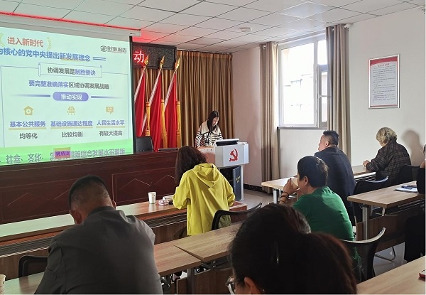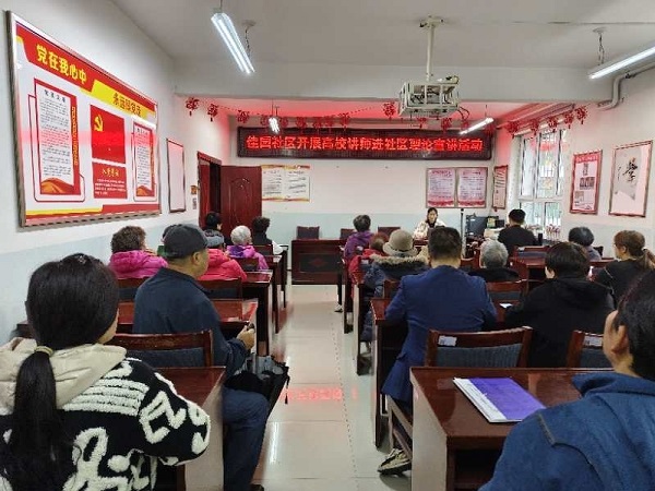 我校马克思主义学院教师季雪芹来到象新社区以《坚定前行谋统一,续写民族新辉煌》为题开展宣讲活动。