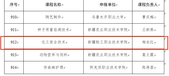 根据教育部发布的《关于公布2023年职业教育国家在线精品课程名单的公告》,我校《化工安全技术》课程成功入选。
