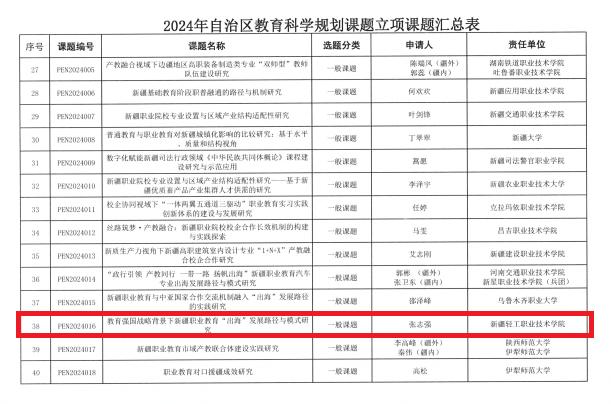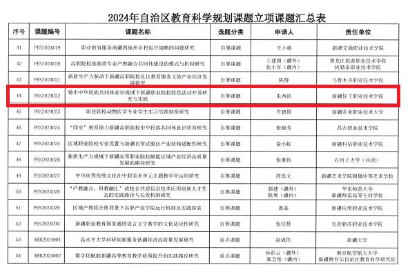 近日,自治区教育科学规划领导小组办公室公布《2024年自治区教育科学规划立项名单》,我校2项课题获立项,包括一般项目1项,自筹项目1项。