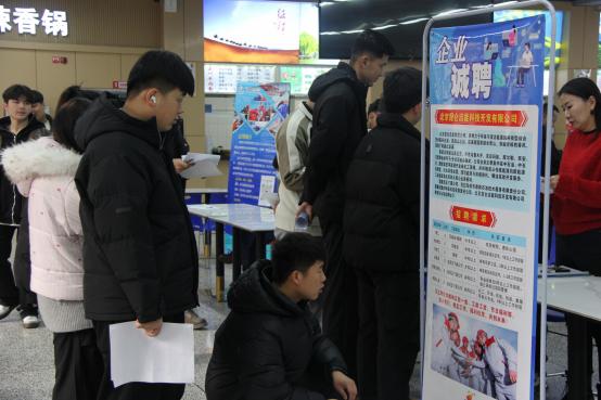 招聘会现场,毕业生们精心准备,积极向心仪的单位自我推荐,展现优势。用人单位则通过生动的宣讲、精美的海报等多种形式,详尽地向毕业生介绍单位概况、岗位需求及职业前景。各学院领导、毕业班辅导员及班主任也积极地向用人单位推荐优秀的毕业生,为毕业生们提供就业指导服务。