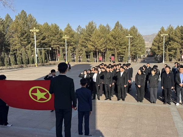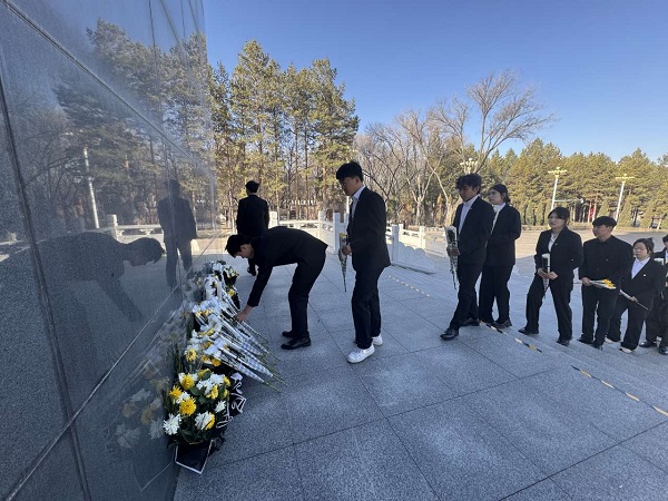 活动当日,师生们身着素衣,手持黄白菊花,迈着沉重而坚定的步伐,缓缓走向烈士纪念碑。大家低头默哀、深深鞠躬,这一刻,时间仿佛凝固,微风轻拂,似在传递着对先烈们的无尽思念。随后,党员教师重温入党誓词,共青团员重温入团誓词,全体师生在烈士纪念碑前庄严宣誓,激昂的誓言在陵园中久久回荡。