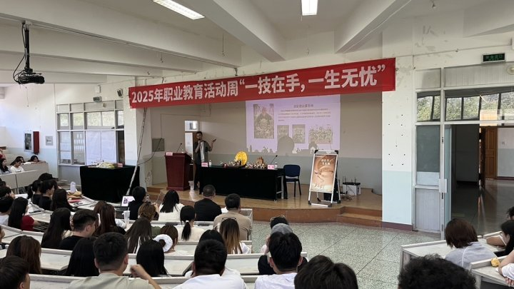 为深化产教融合,推进非遗活态传承,数字媒体学院紧扣“一技在手,一生无忧”2025职教周主题,于5月14日15:30-17:30在米东校区北区学术交流中心第二阶梯教室举办“非遗进校园文化润心声”技能人才风采日活动。新疆省级工艺美术大师、乌鲁木齐市级泥彩塑非遗项目传承人,同时身为新疆文旅宣传推介人、新疆科学文化传播大使、“疆小陶”彩塑非遗文创品牌创始人及新疆软陶彩塑行业领军人物的吴绍杰老师,受邀开展《泥塑中的新疆魅力——传统技艺与数字艺术的跨界对话》专题讲座。参加本次讲座的有数字媒体学院全体教职工,23级、24级在校学生133人。