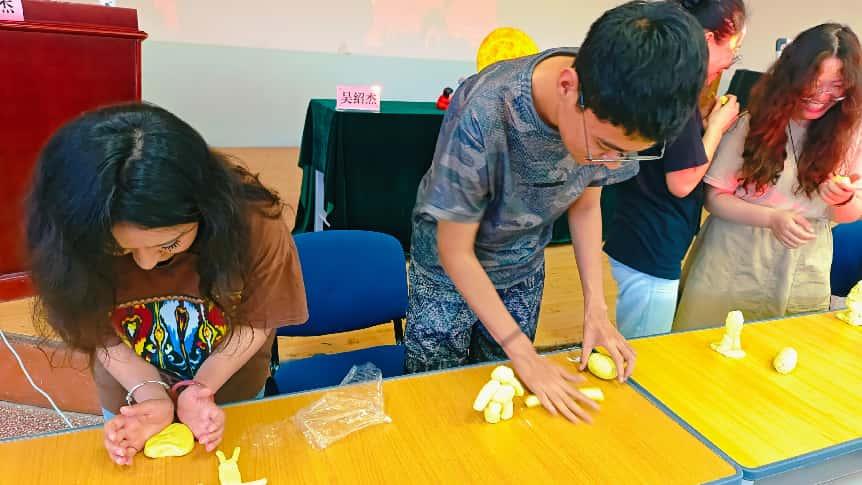 在互动实践环节,吴绍杰老师亲自示范泥彩塑制作,细致讲解从陶土挑选、揉制到塑形的每一个步骤,包括不同手法的运用、细节处理技巧等,毫无保留地分享传统技艺的精髓。在他的鼓励下,师生们热情高涨,纷纷动手尝试。有的师生专注地捏塑造型,小心翼翼地雕琢细节;有的则大胆创新,融入独特创意。吴老师穿梭于师生之间,及时给予指导与肯定,耐心纠正手法、完善造型。现场气氛热烈,师生们在实践中亲身感受泥彩塑的魅力,不仅加深了对非遗技艺的理解,更在动手操作中体会到传统工艺的温度,进一步激发了对非遗文化传承与创新的热情。