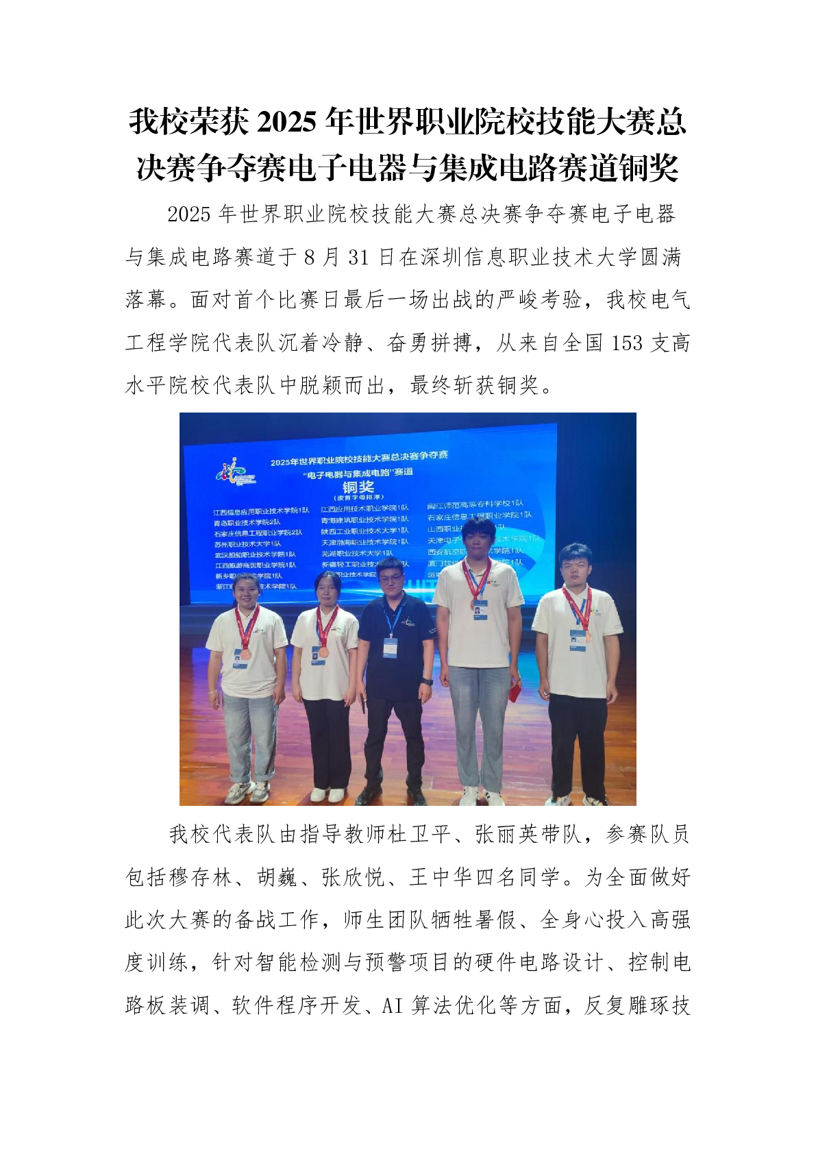 2025年世界职业院校技能大赛总决赛争夺赛电子电器与集成电路赛道铜奖