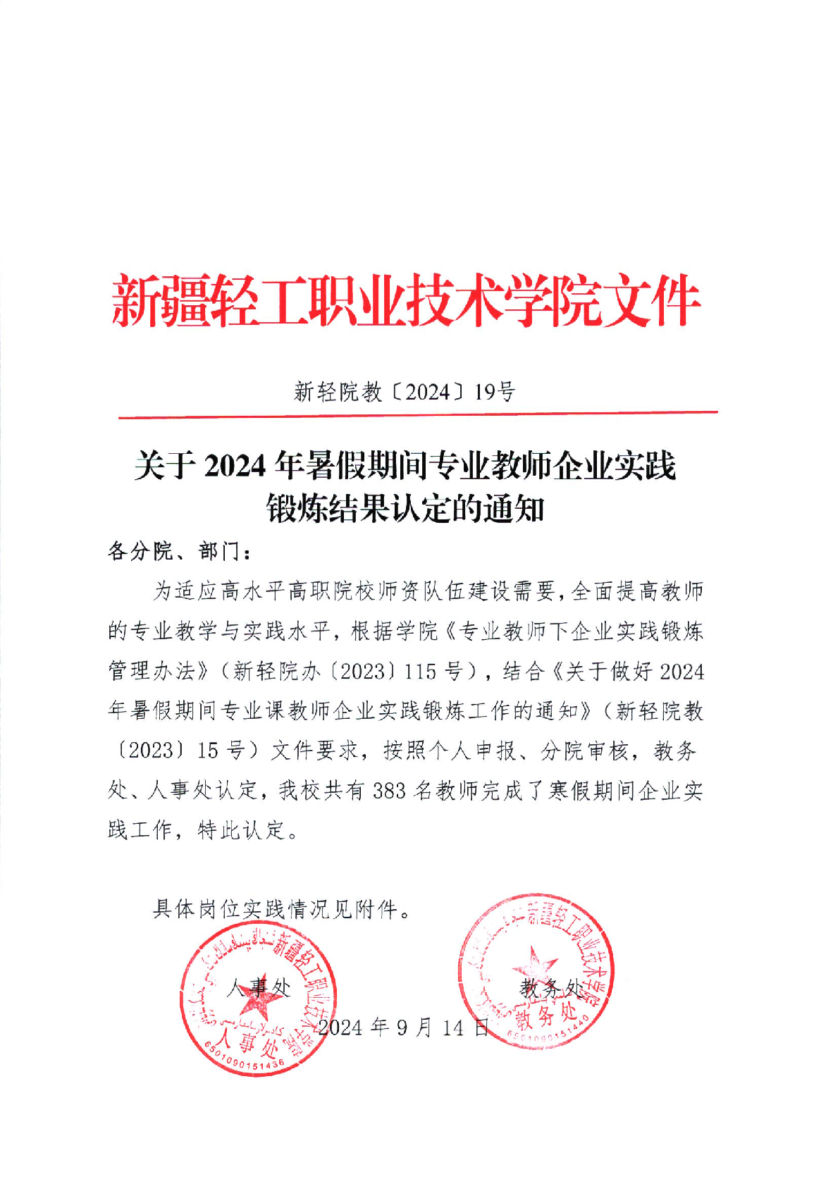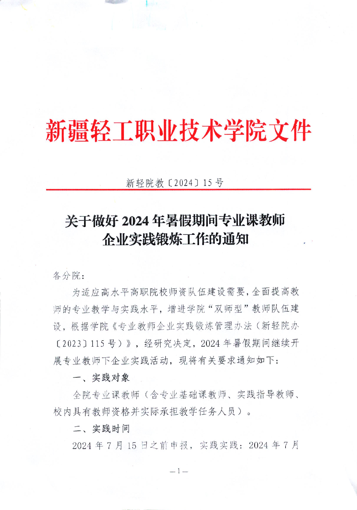 关于做好2024年暑假期间专业课教师企业实践锻炼工作的通知