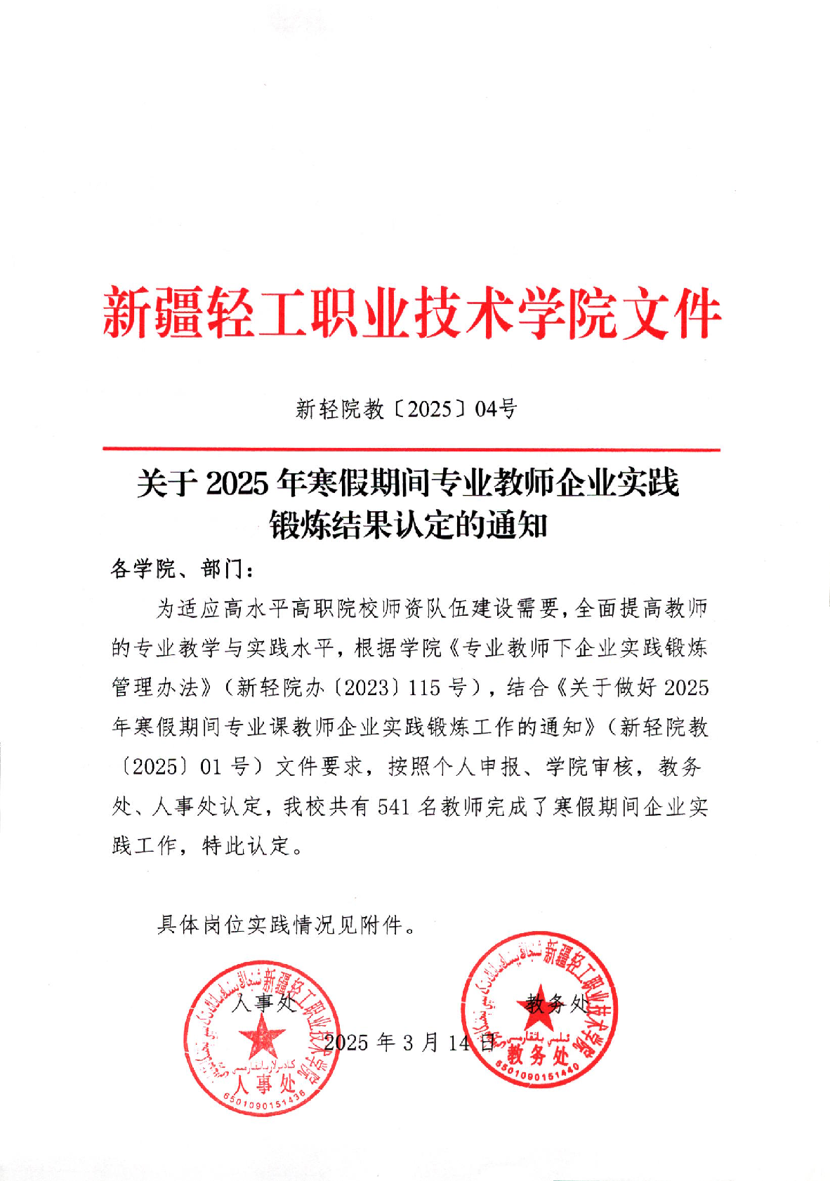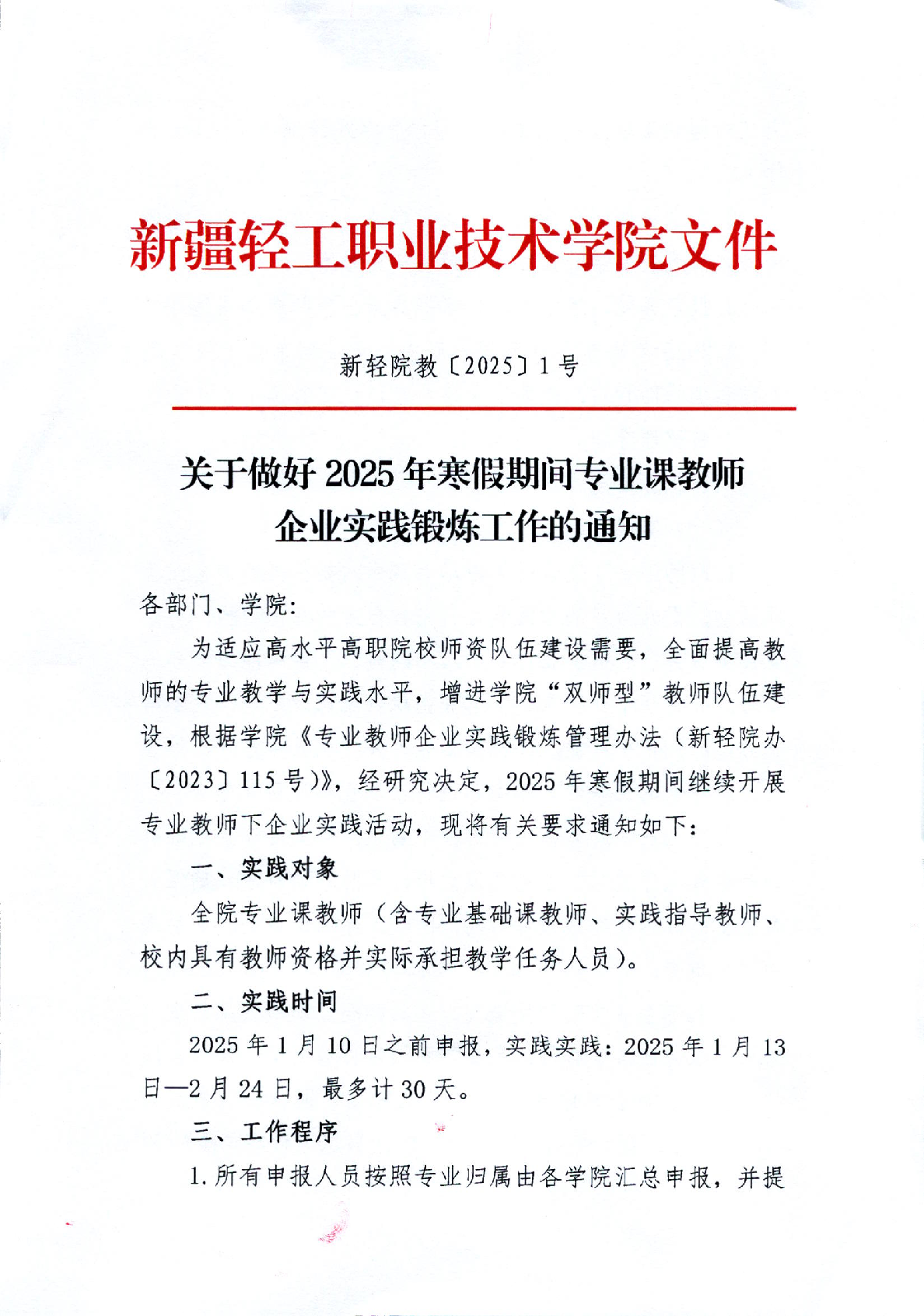 关于做好2025年寒假期间专业课教师企业实践锻炼工作的通知