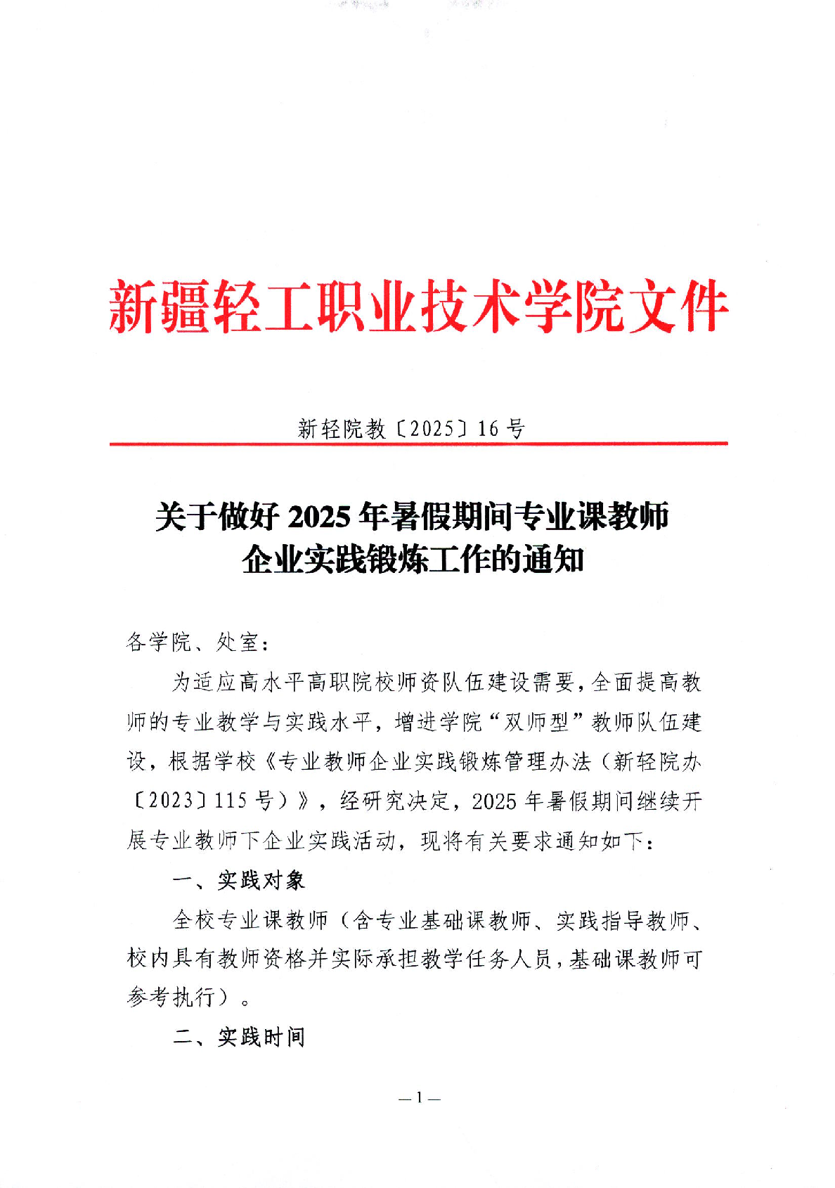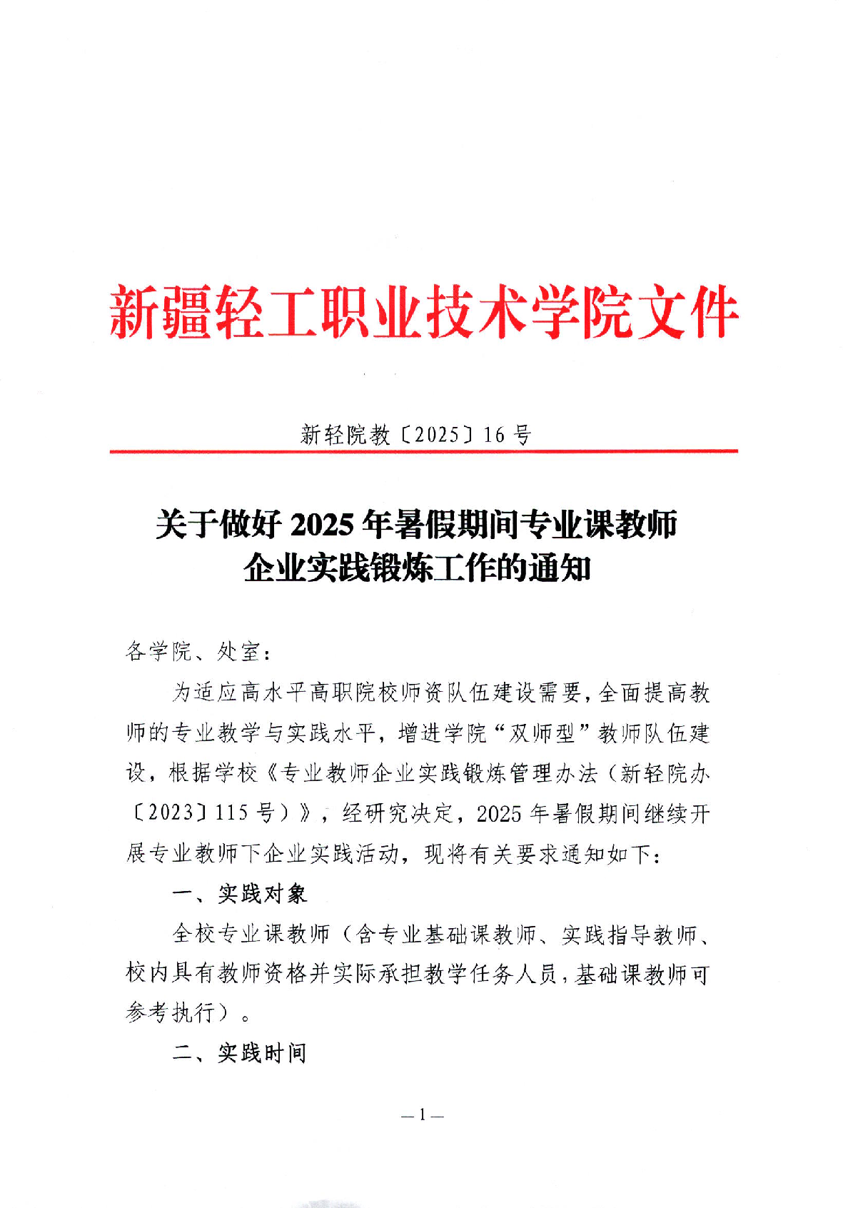关于做好2025年暑假期间专业课教师企业实践锻炼工作的通知