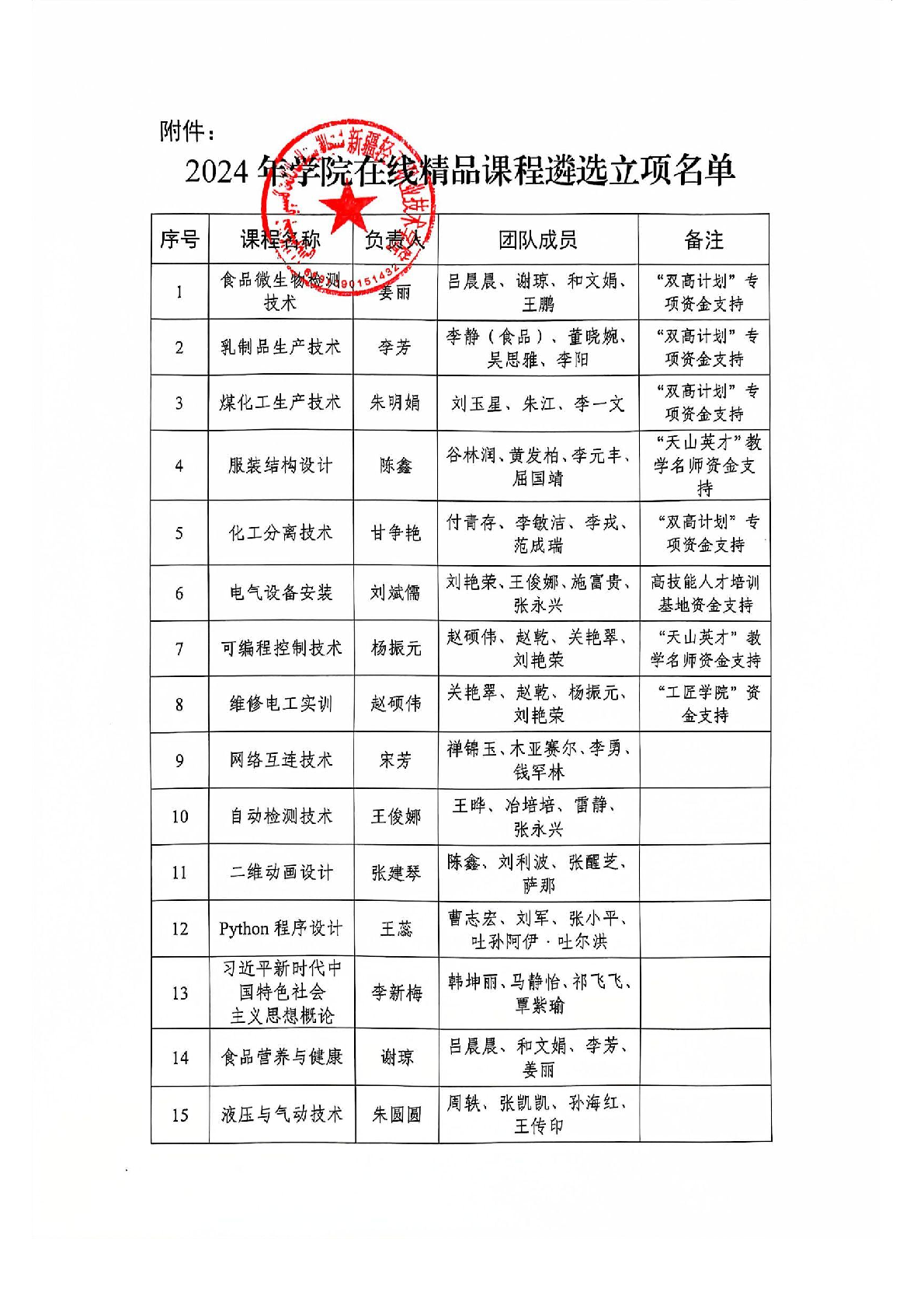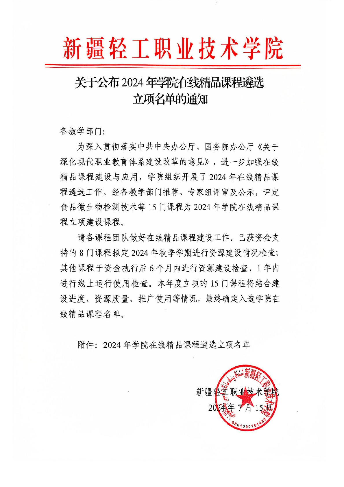 关于公布2024年学院在线精品课程遴选立项名单的通知