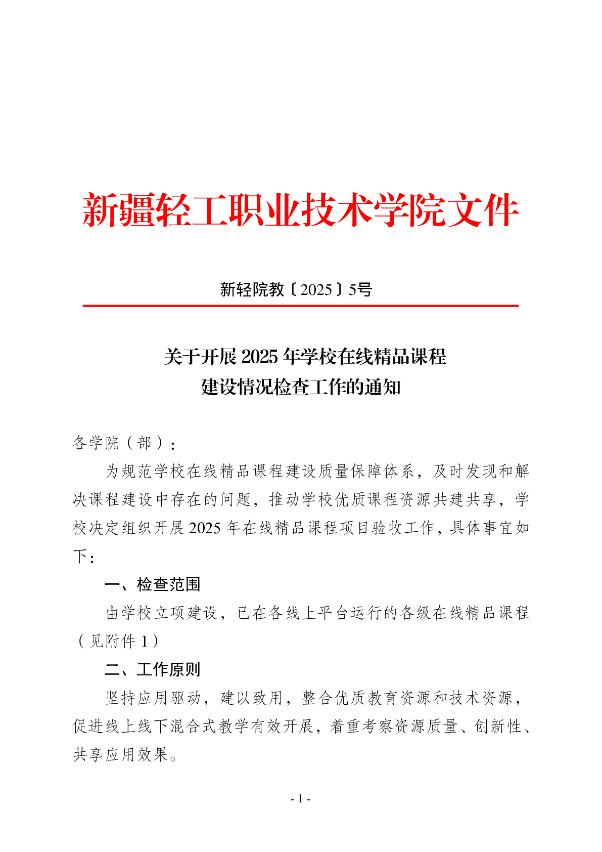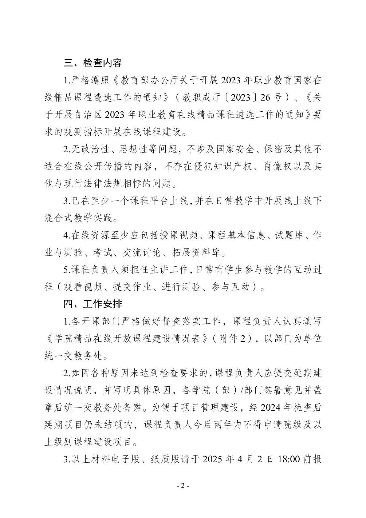 关于开展2025年学校在线精品课程建设情况检查工作的通知