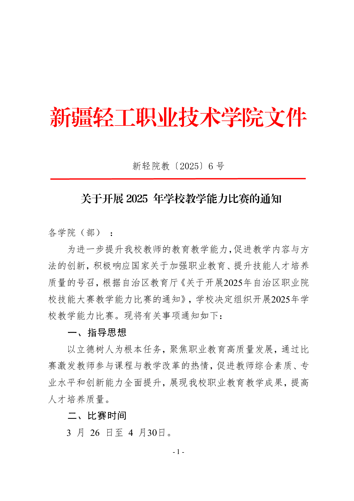 关于开展2025 年学校教学能力比赛的通知