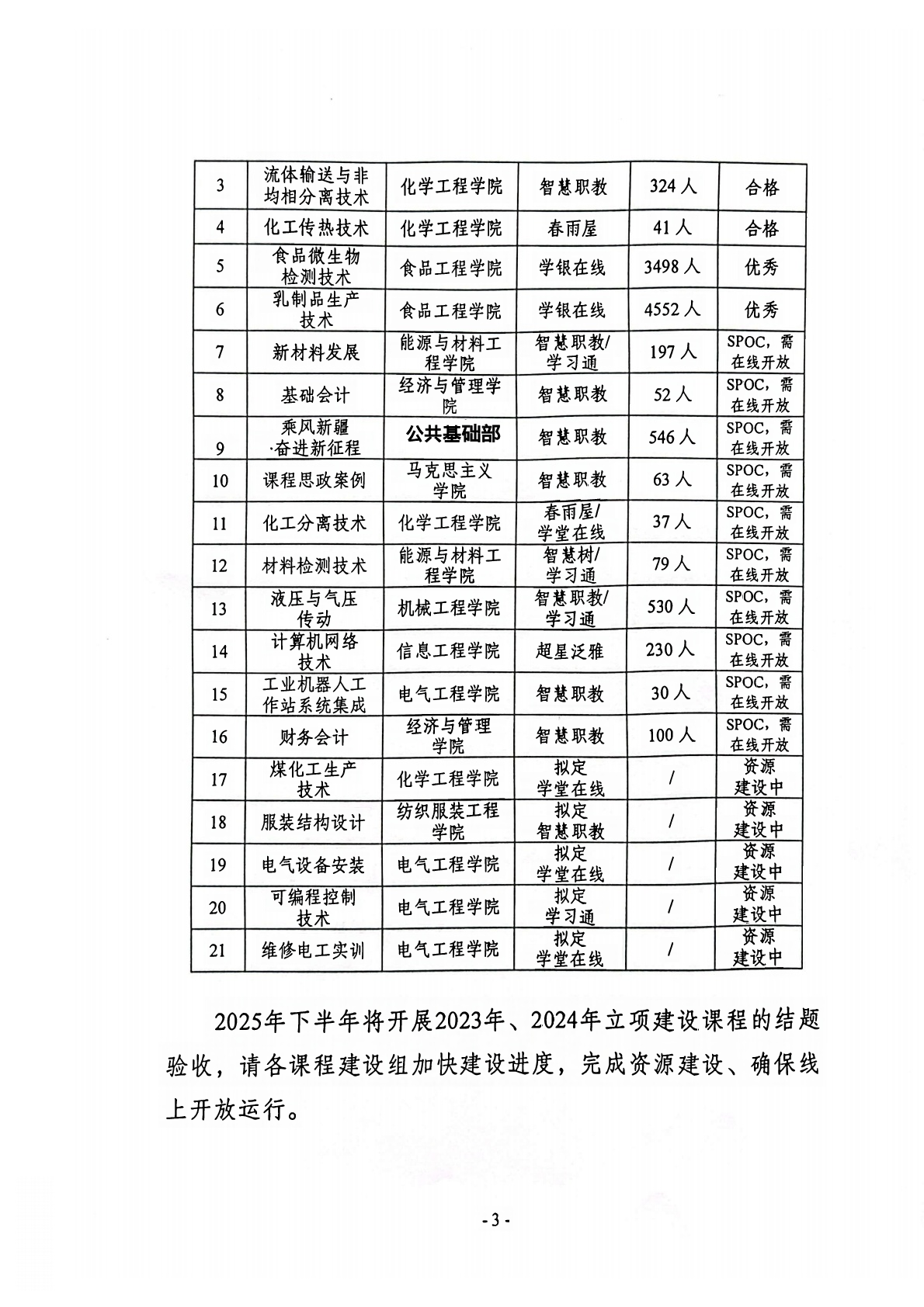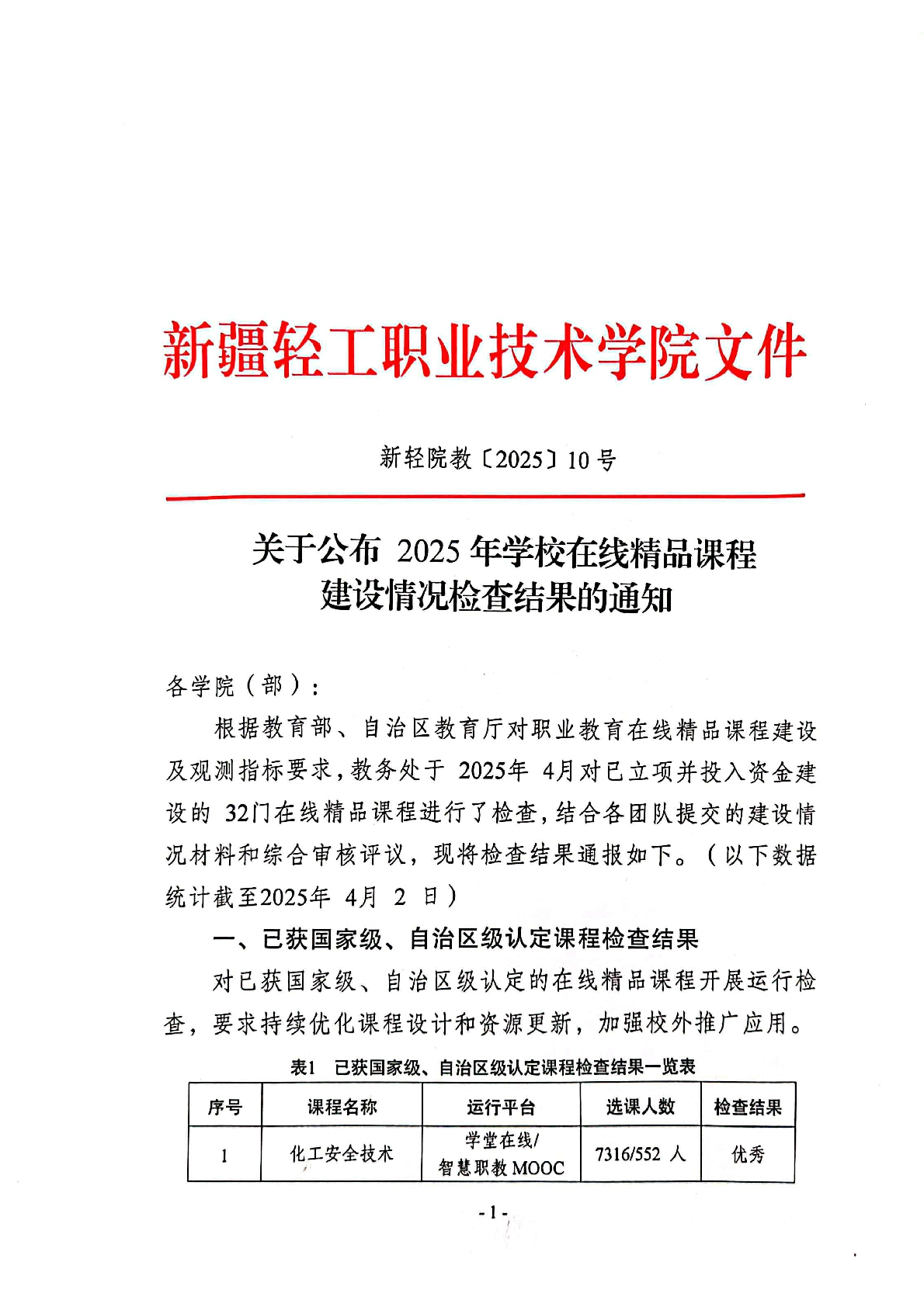 关于公布2025年学校在线精品课程建设情况检查结果的通知