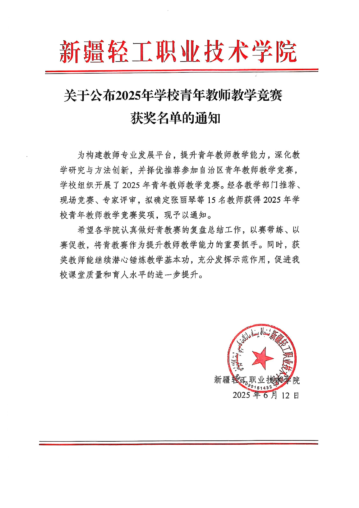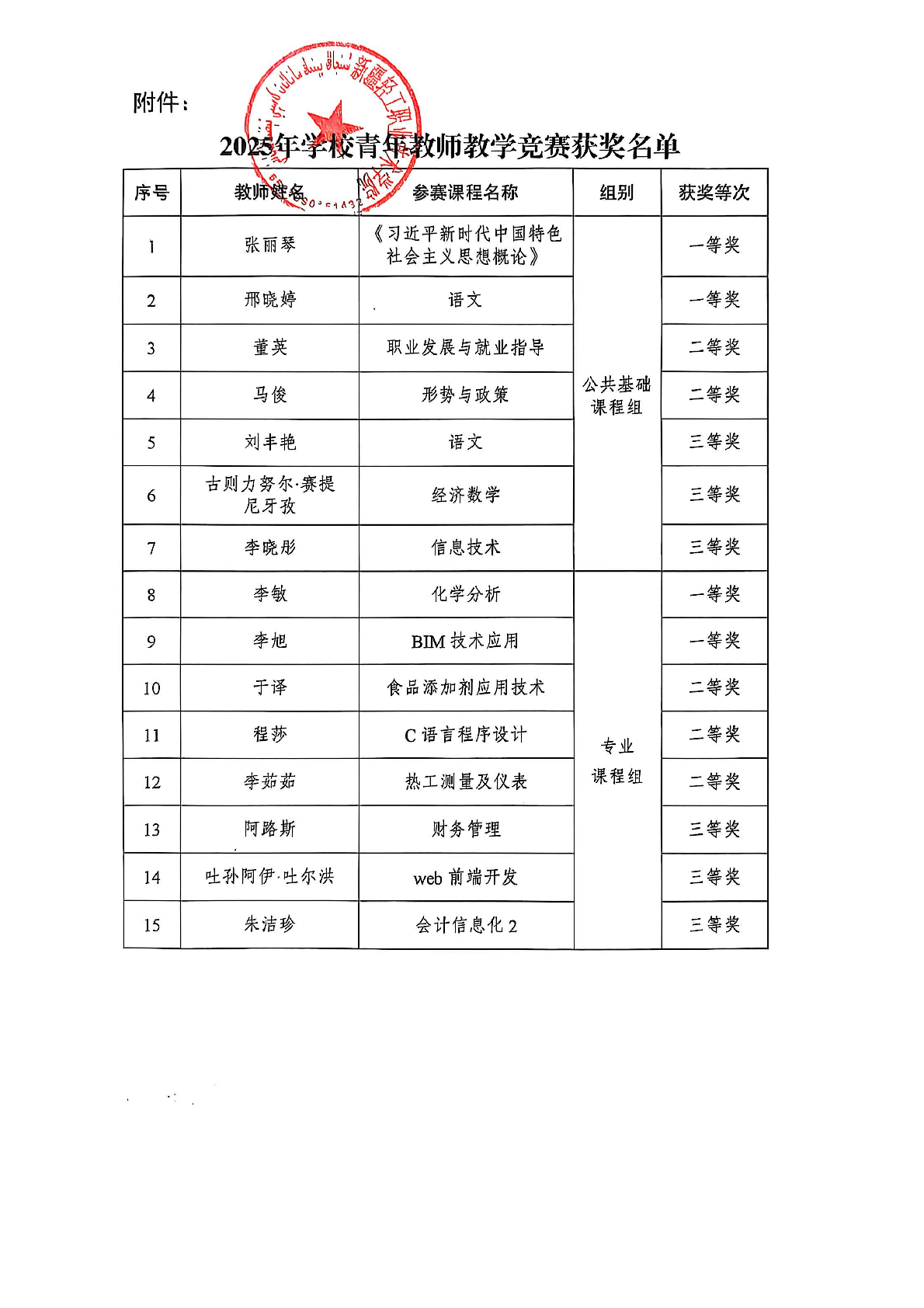 关于公布2025年学校青年教师教学竞赛获奖结果的通知