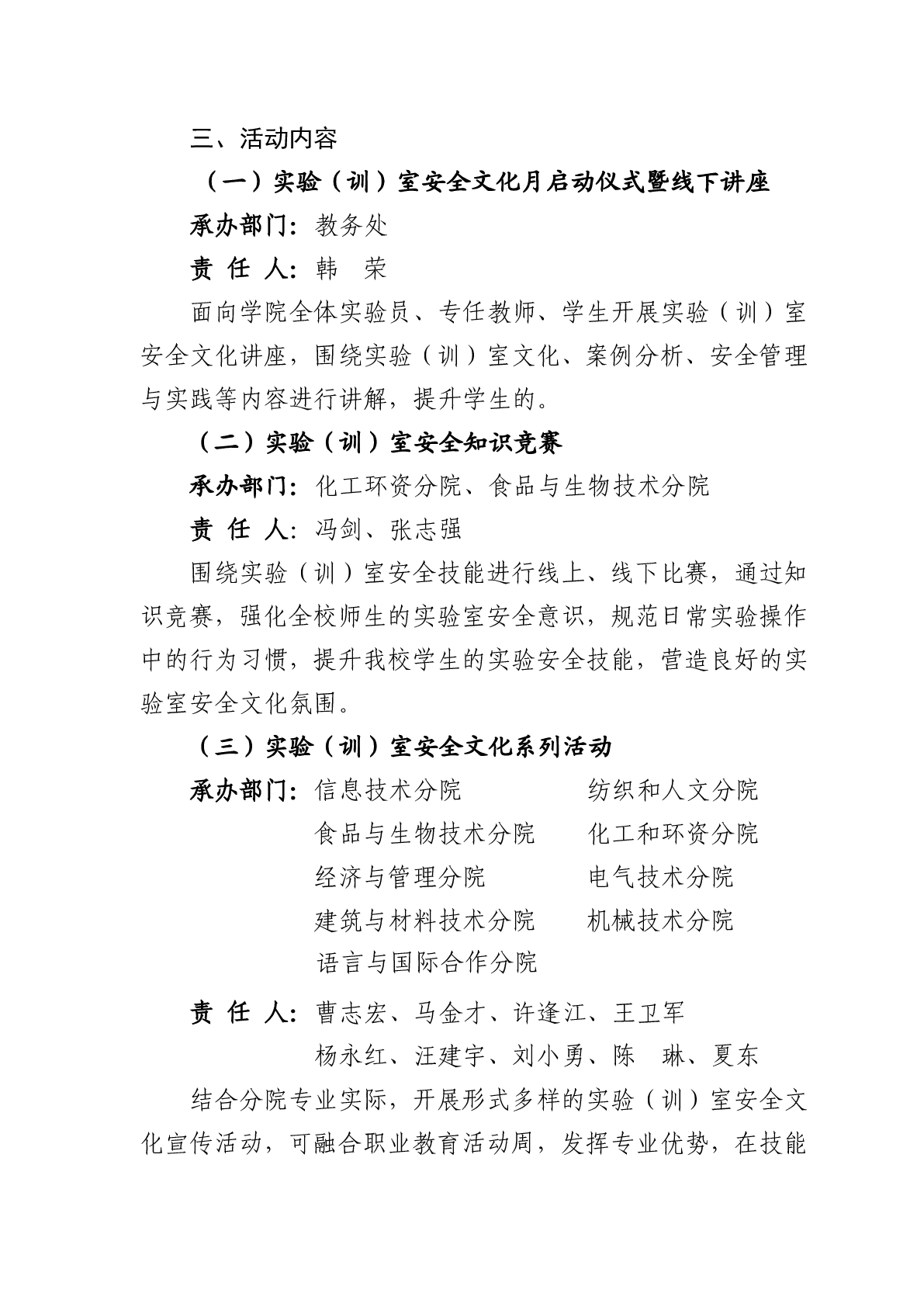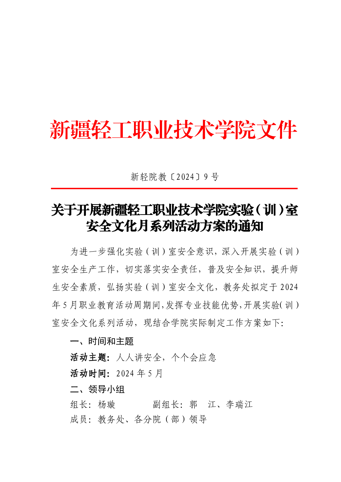 关于开展新疆轻工职业技术学院实验(训)室安全文化月系列活动方案的通知