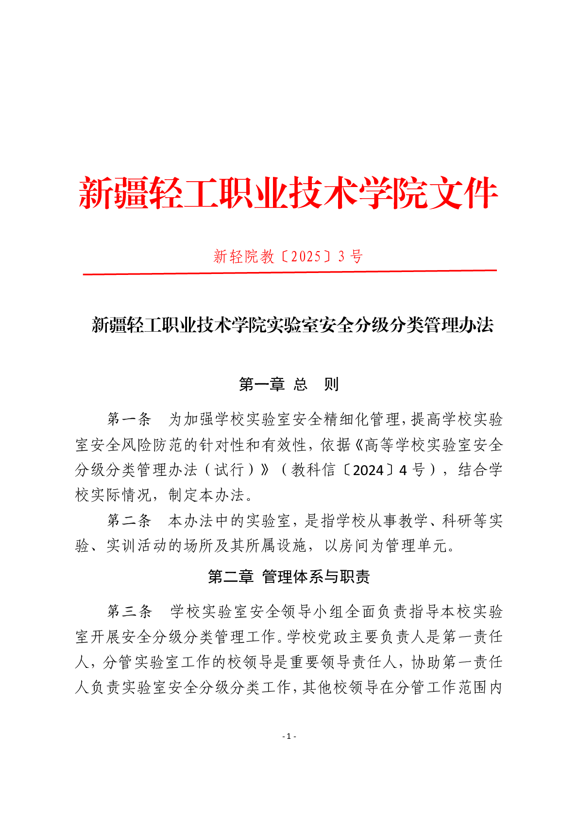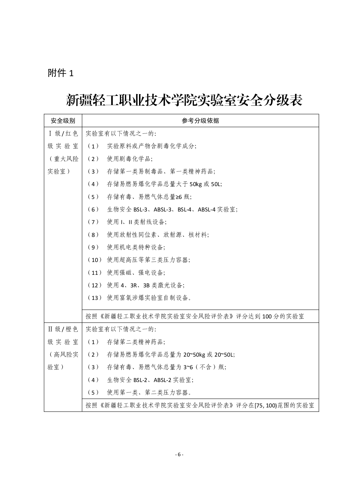 新疆轻工职业技术学院实验室安全分级分类管理办法