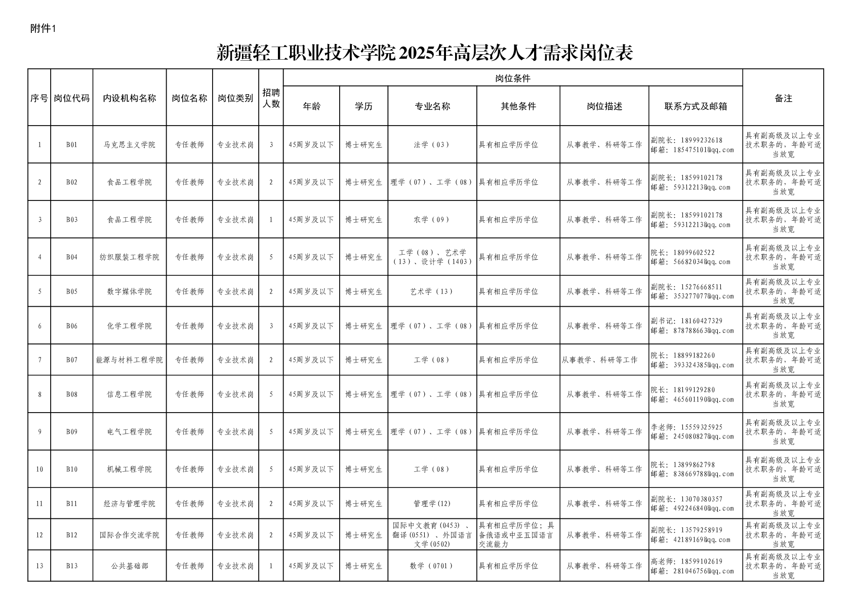 按要求填写《新疆轻工职业技术学院高层次人才引进申报书》(附件1),以“岗位代码-XX学院-高层次人才(姓名)应聘”命名,将邮件发送至各学院对应邮箱(各学院联系方式及邮箱见岗位需求表)。
