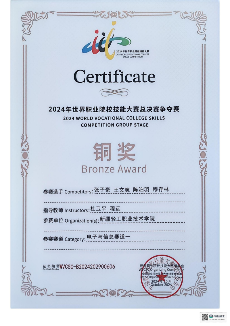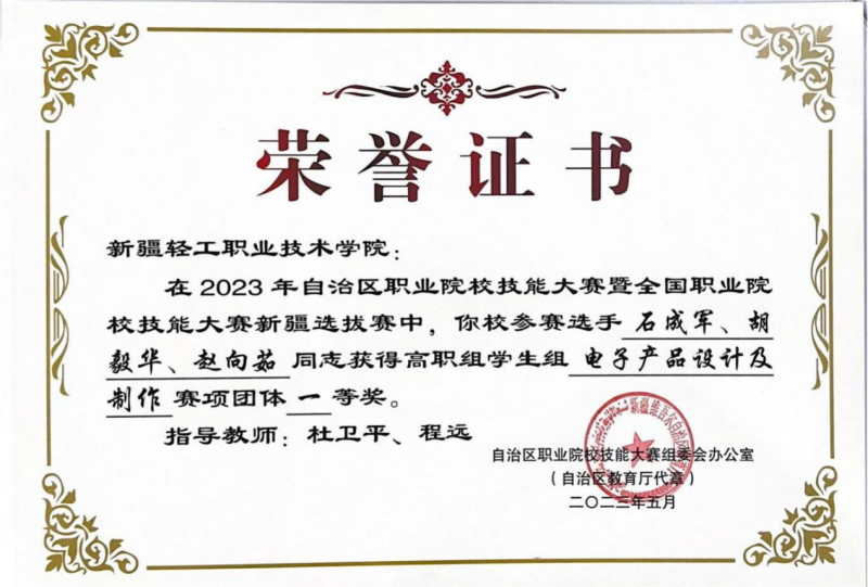 电子设备装接工、智能硬件装调员和电工职业技能等级证书。